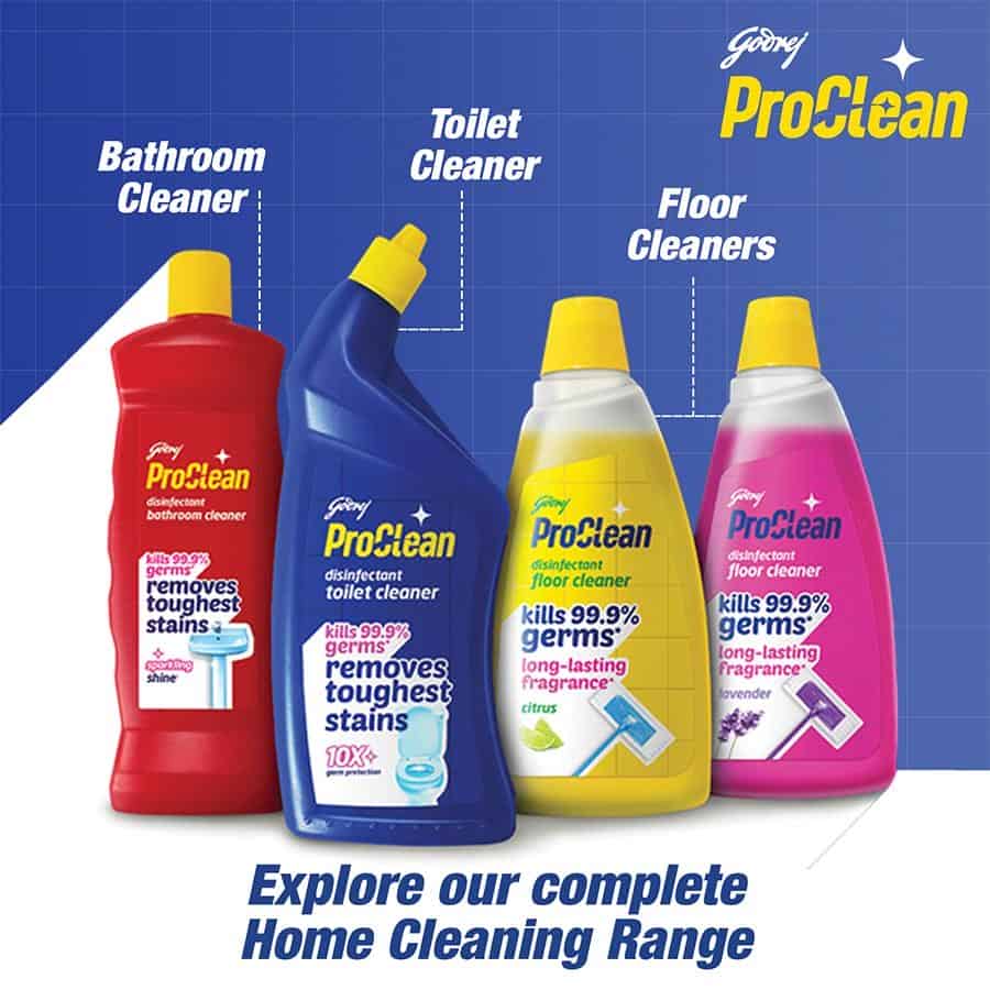 Godrej ProClean Floor Cleaner provides one-stop floor cleaning solution and is suitable for daily use. It works on – Ceramic, Marble, Granite, Mosaic & non-porous surfaces in the kitchen etc. Gives sparkling looking clean floors.