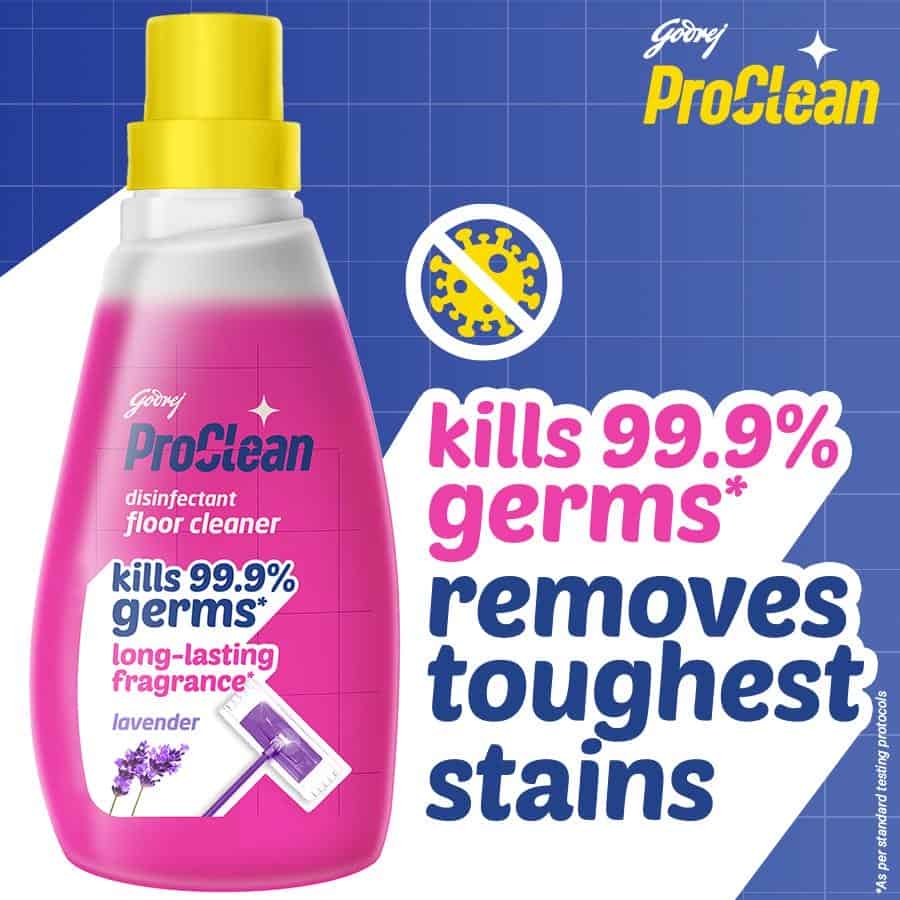 Godrej ProClean Floor Cleaner provides a one-stop floor cleaning solution and is suitable for daily use. It works on – Ceramic, Marble, Granite, Mosaic & non-porous surfaces in the kitchen etc. Gives sparkling-looking clean floors. It is good at removing the toughest stains and kills 99.9 percent of germs.