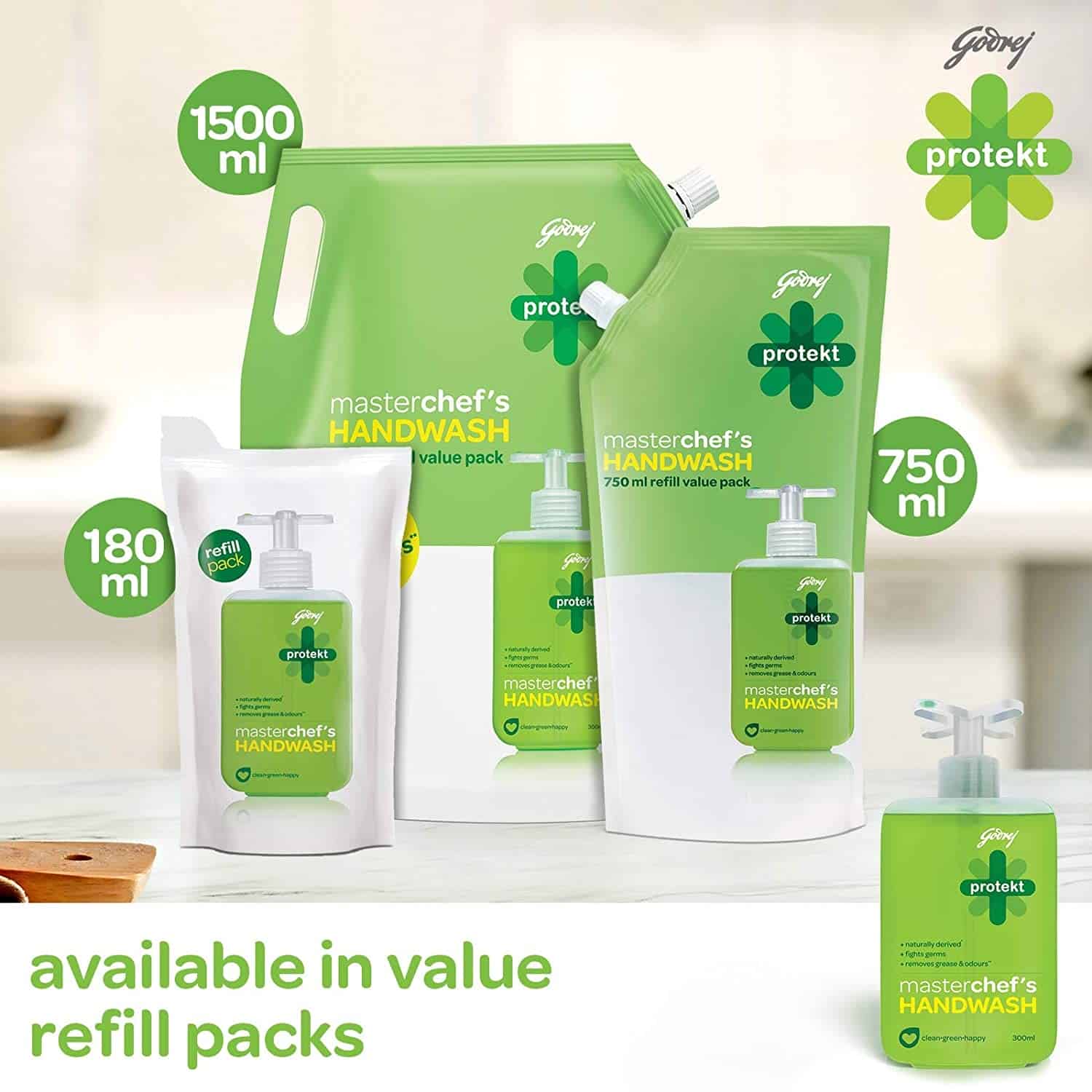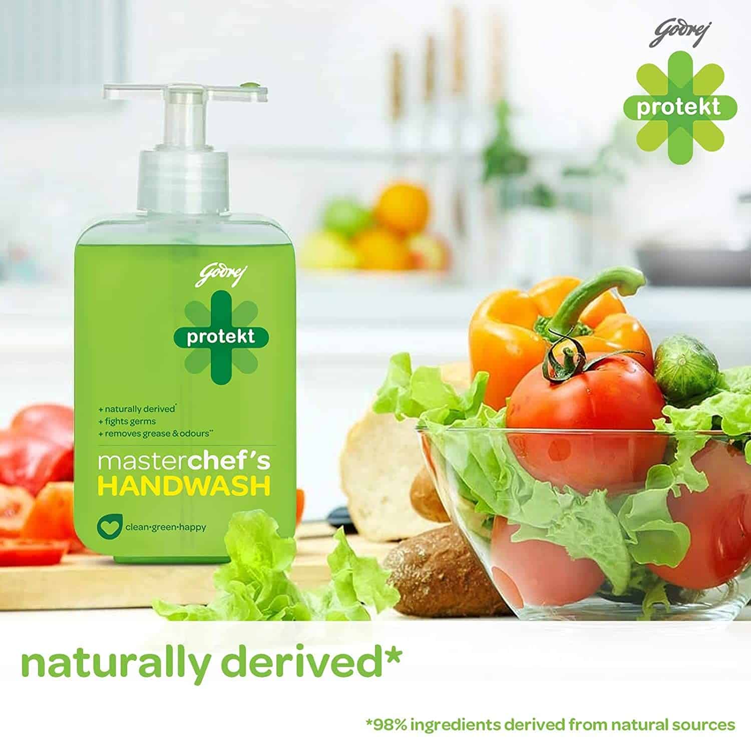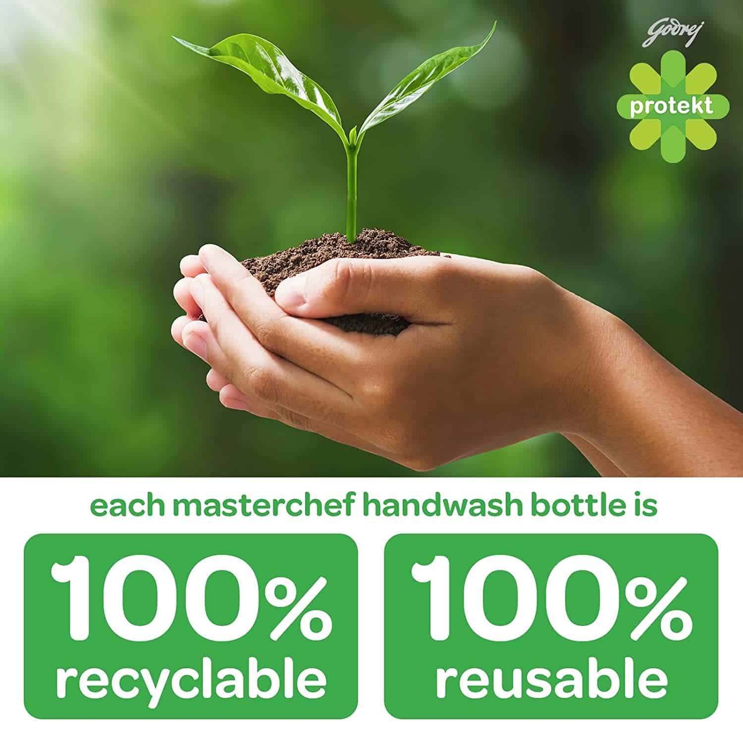 Godrej Protekt Masterblaster is a handwash unlike any other. It does not contain harmful chemicals and is naturally derived. It washes the germs away with the goodness of glycerin and essential oils leaving your hands soft and your nose delighted. A Triclosan free handwash, has been replaced with saner actives. This product is 100% recyclable and 100% reusable. Also, available in Protekt Masterchef's variant.
