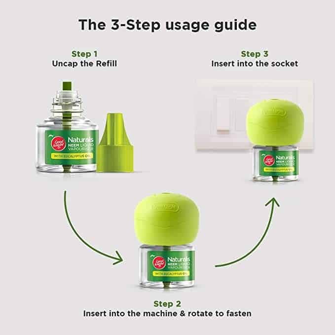 • Contains: 1 unit of Good knight refill of Neem Anti-Mosquito Liquid Vapouriser (45 ml)
