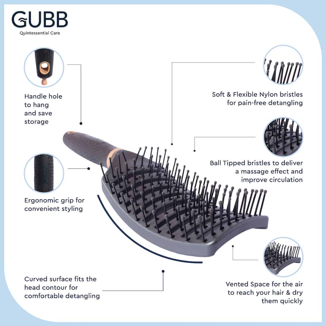 Pair the GUBB vent hair brush with your favourite hair appliances for speedier blowouts! Best suited for medium and long hair, is volume boosting brush is excellent at detangling hair. The vents promote heat circulation, and the ball tipped bristles are gentle on your scalp.