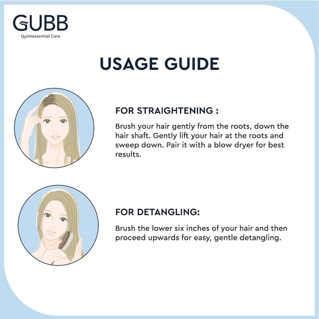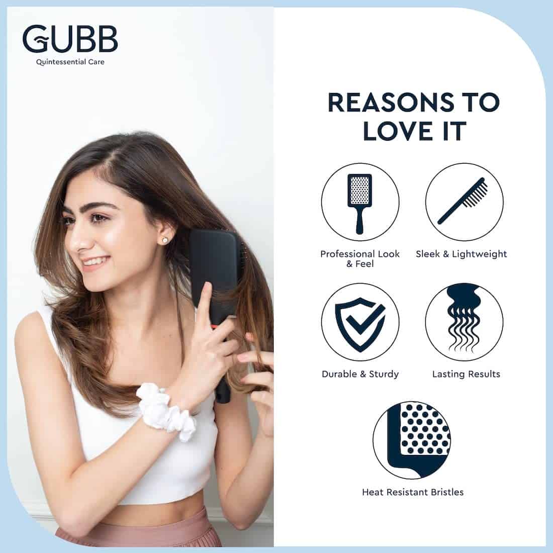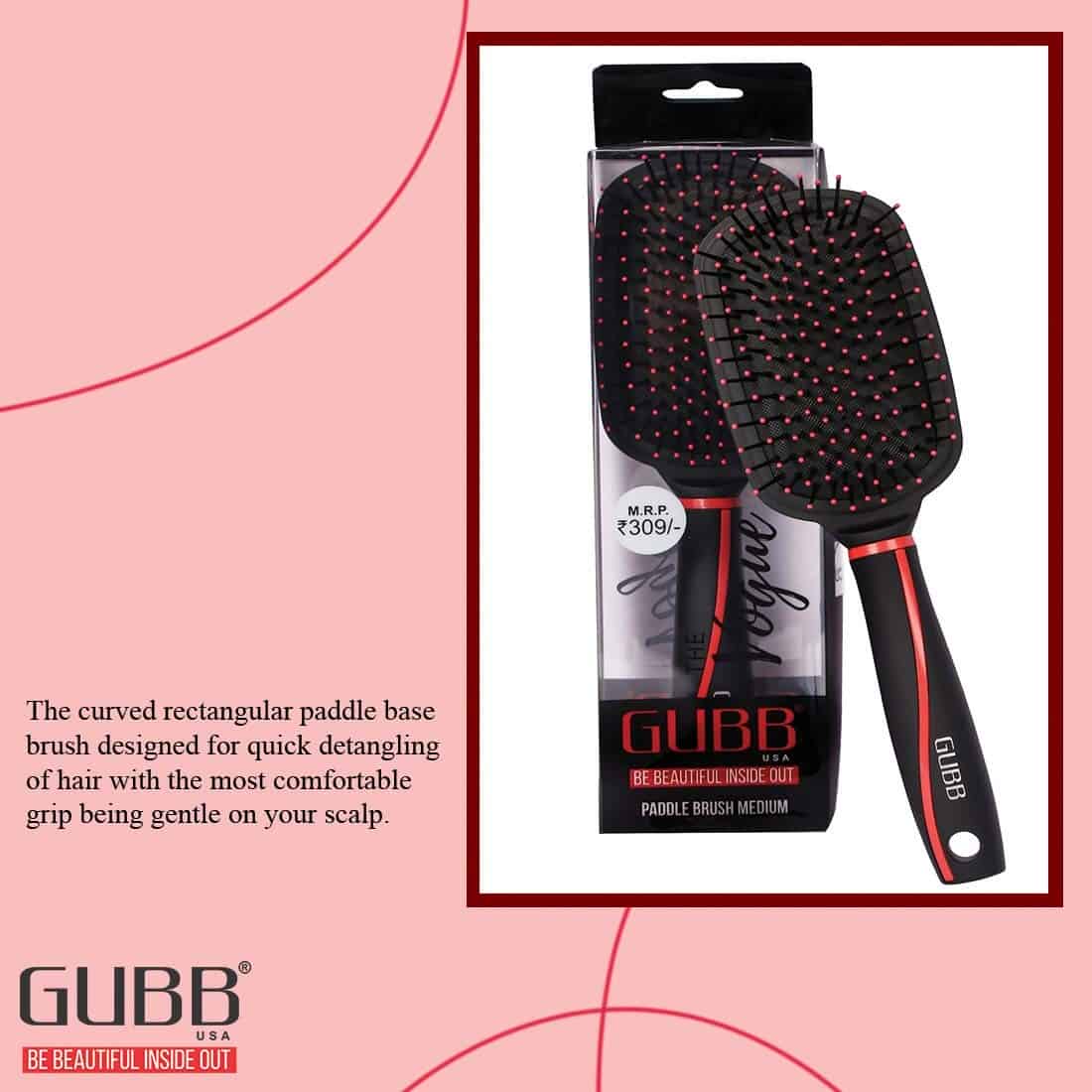 Get Stylish Sleek Results - GUBB USA presents Paddle Hair Brush for all hair care freaks that helps every individual to attain Stylish Sleek results within few minutes. From polishing or straightening of long, medium & short tresses it helps in attaining the picture perfect sleek look with great comfort and ease and gives you a salon finish look at the luxury of your home.
