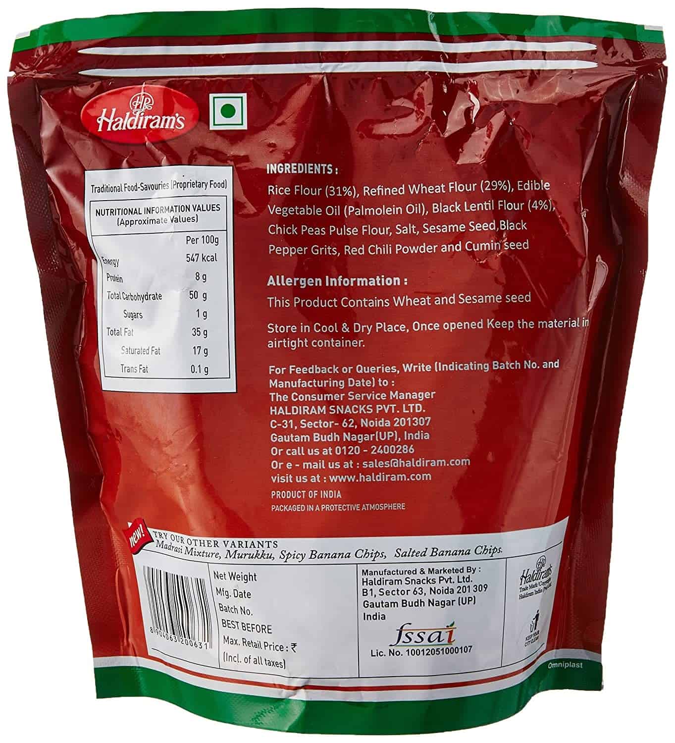 Haldirams Chakoli bring you the traditional Indian snack in one pack.The Chakoli has a crispy texture that makes it hard to resist.The meticulous packing ensure long-lasting freshness.The set quality standards of Haldiram ensure safety for the consumers.