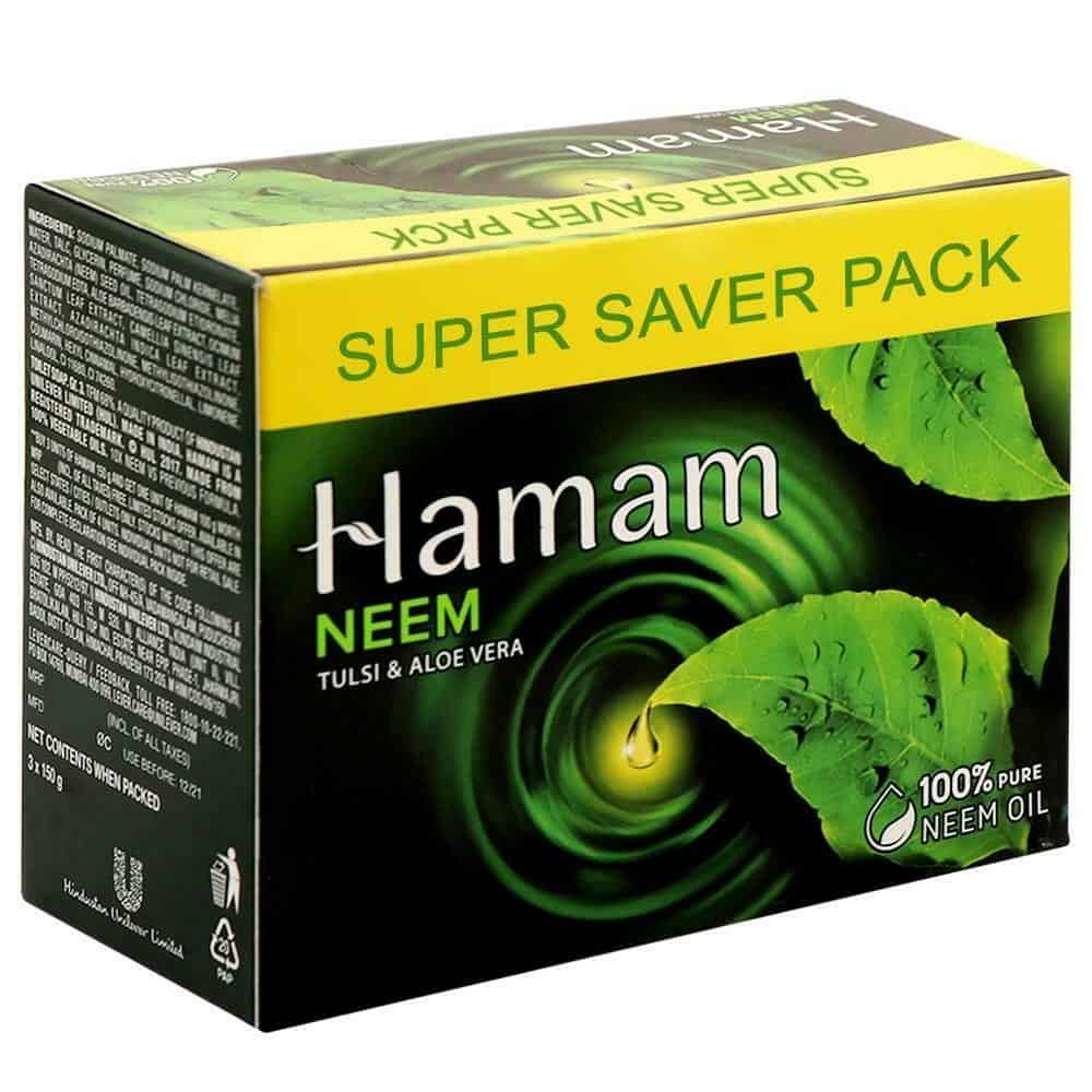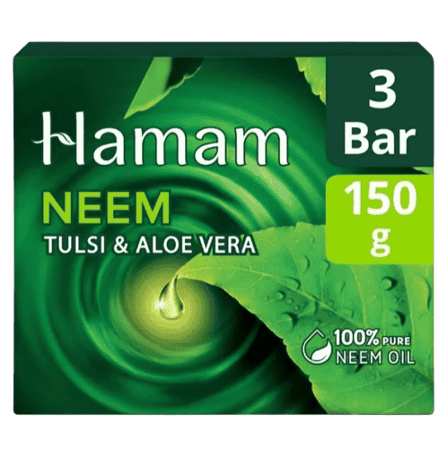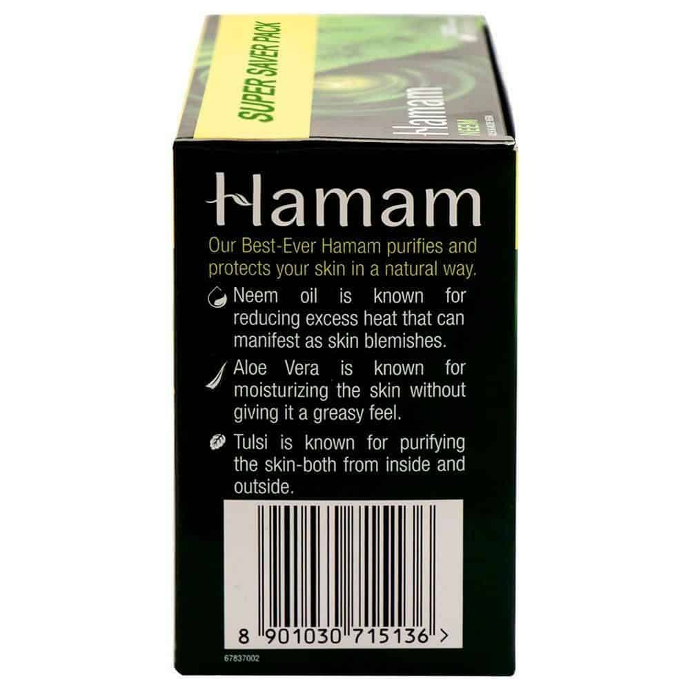 Hamam is a brand that has consistently stood by its promise of honesty and safety for the last 89 years and continues to do so. Hamam harnesses the best of nature to provide safety and protection to your skin and that's why it has stood the test of time as a component of the wisdom mothers pass on to their children to keep them safe. Now your favourite Hamam is available in a pack of 8. It harnesses one of the nature's most potent protectors with 100 percent pure neem oil and complements it with two of nature's most effective care givers - Tulsi and Aloe vera to bring together the best solution to fight your skins battles against dust, sweat and pollution. It does not merely cleanse your skin, it purifies it. Hamam promises you a bath that will evoke the best of nature