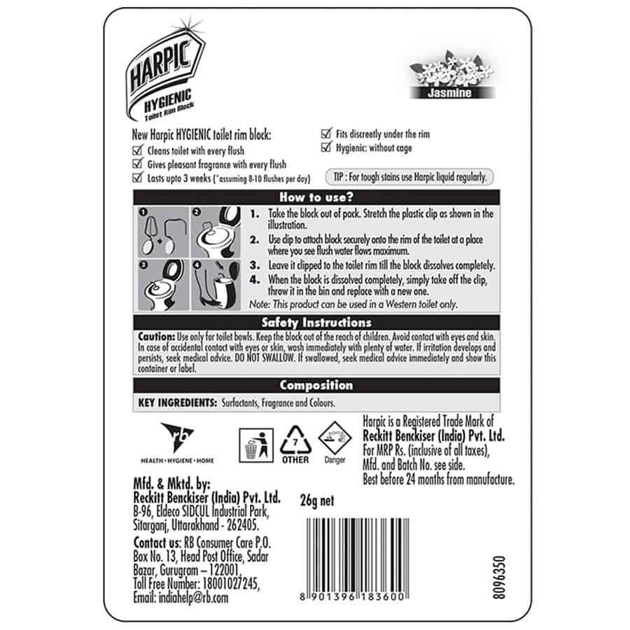 Harpic Hygienic Jasmine Toilet Rim Block, 26g