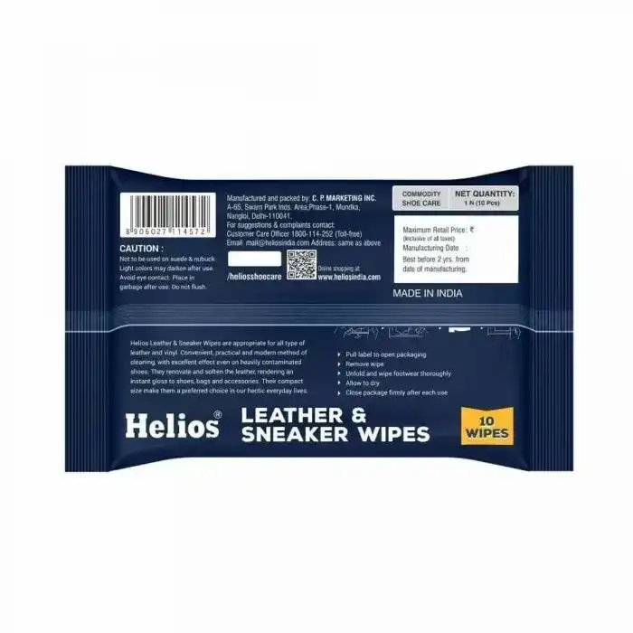 Leather and Sneaker Wipes by Helios are designed to remove dirt and grime from your shoes and leave them looking fresh and new. The pack includes 2 packets of wipes and one packet contains 10 wipes.