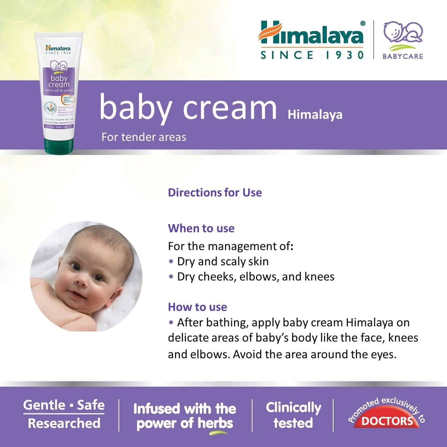 Apply after bath to delicate areas of the body like face, knees and elbows. Avoid the area around the eyes.