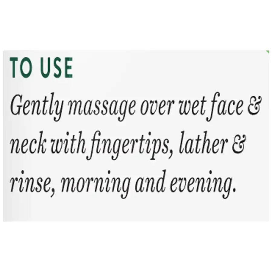 Usage: Gently massage over wet face and neck with fingertips, lather and rinse, morning and evening.