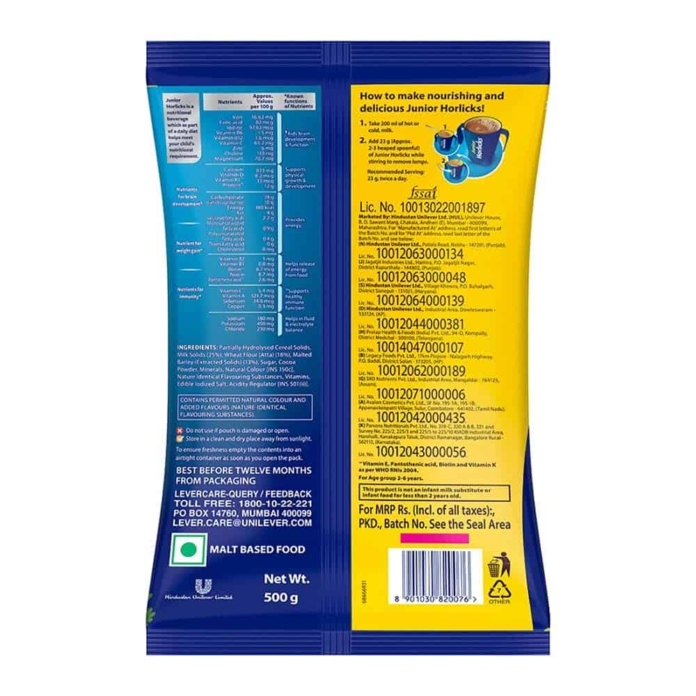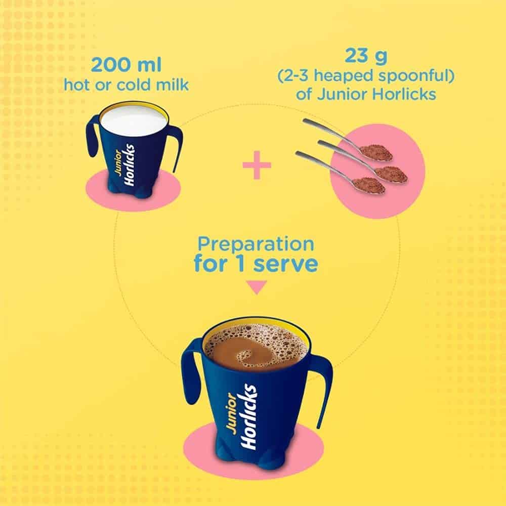 • Junior Horlicks is a nutritional beverage which as part of a diet helps meet your child's nutritional requirement