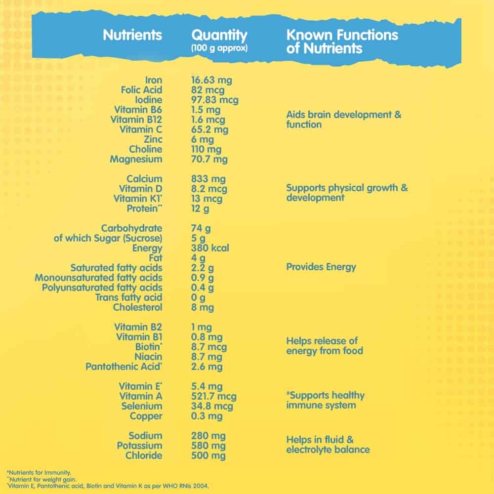 • nutrients such as Calcium, Vitamin D, Vitamin K1 & Protein that are known to support physical growth & development