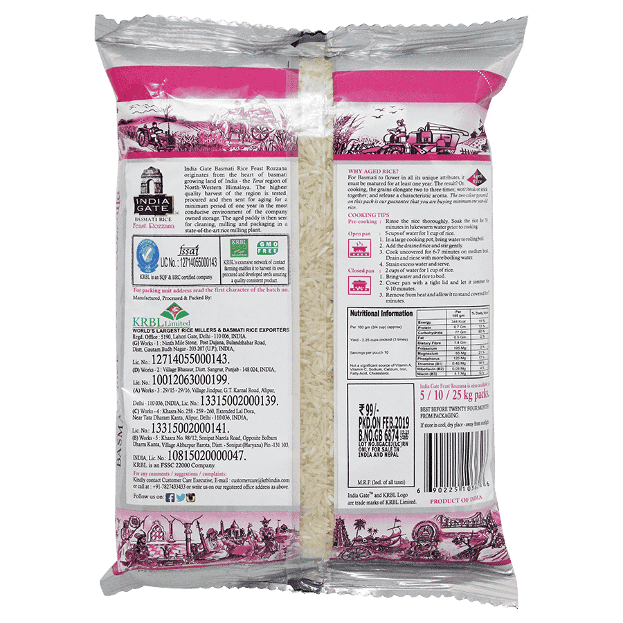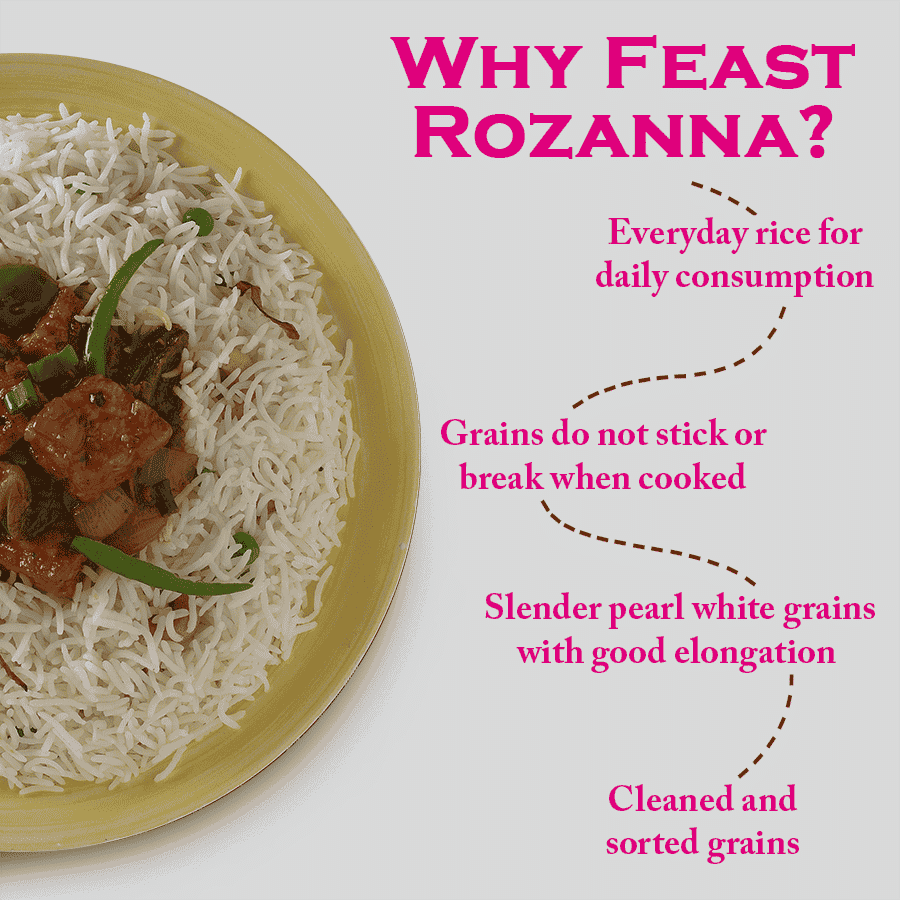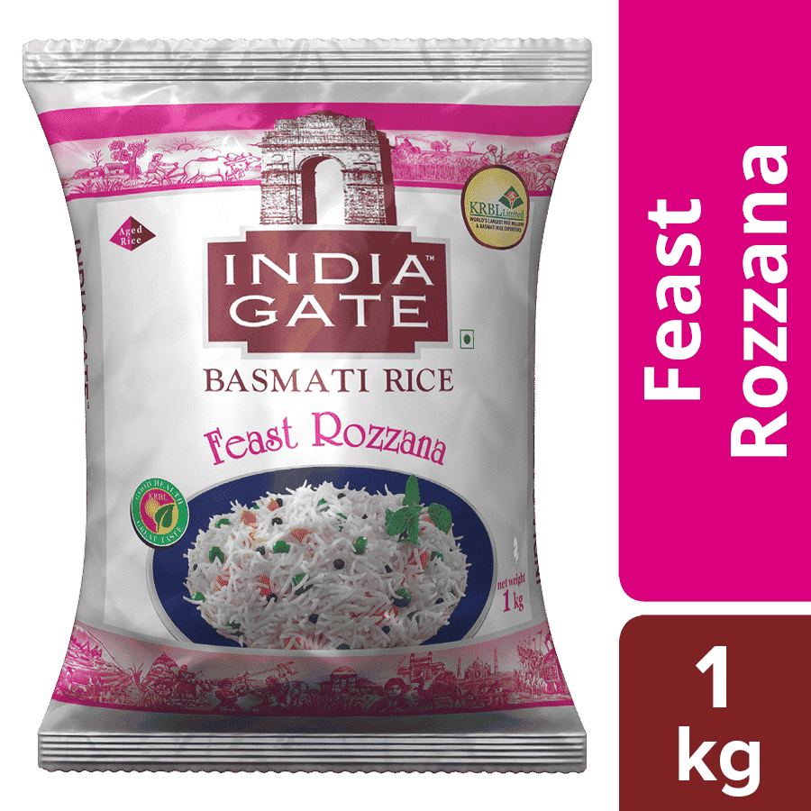 India Gate Feast Rozzana Basmati Rice is the long grain, sweet-smelling rice presents you a big time relish able delight to yourselves. It is completely apt for using in preparing numerous rice items. Wherever you eat in the World, India Gate Basmati Rice will be an essential part of every superiority rice recipe and on your platter to relish.