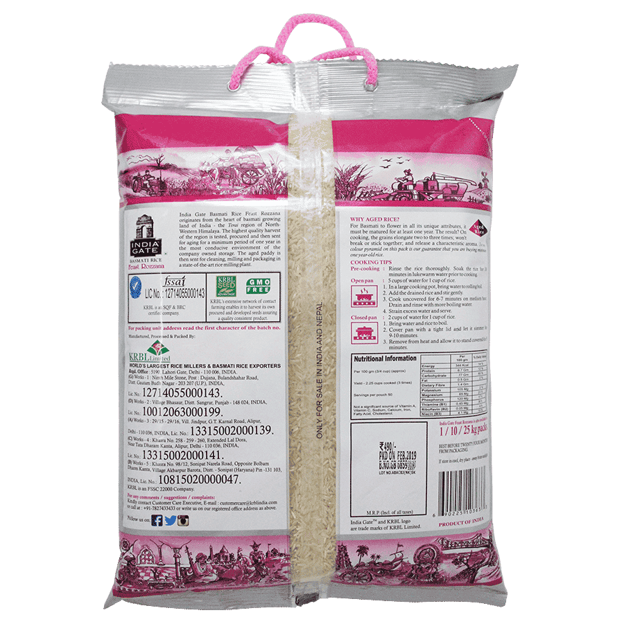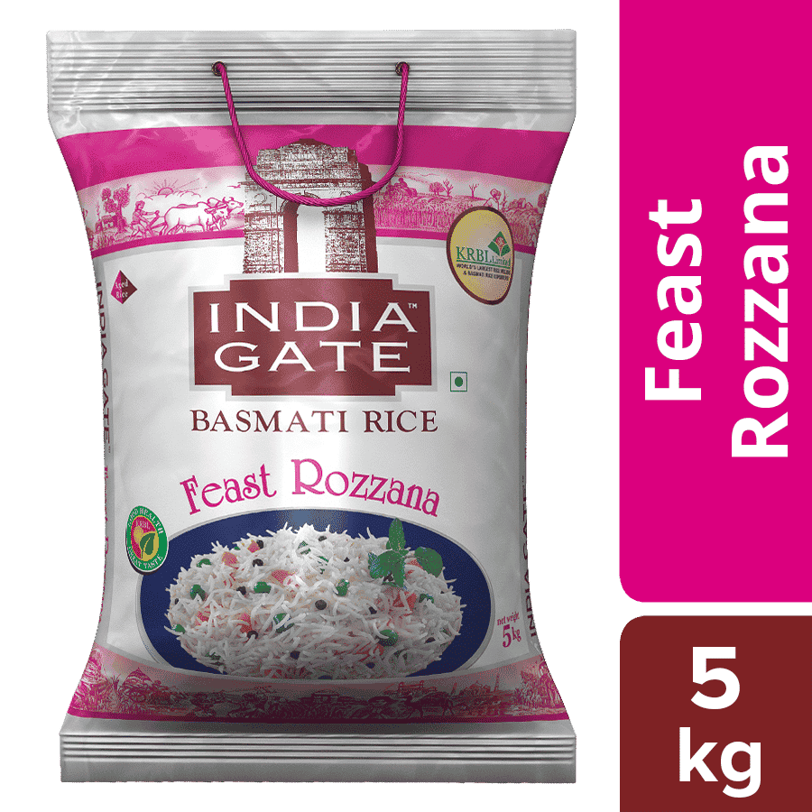 India Gate Basmati Rice Feast Rozzana is defined by its long grains and amazing aromatic flavour. Having this rice is truly having a feast rozzana (a daily feast); combine it with your veggies and serve a nice pulao. Without this Basmati Rice, your biryanis will seem dull and tasteless. This is the perfect ingredient for different rice recipes. Click here for unique and delicious recipes