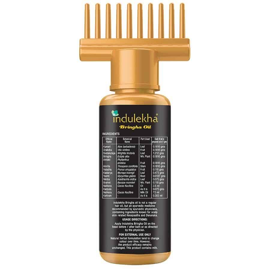Indulekha Bringha Oil is an Ayurvedic proprietary medicine recommended for the regulation of hair and scalp conditions like hairfall, dandruff etc. The excellent action of Indulekha Bringha oil is due to the actions of its Ingredients and the special manufacturing procedure of the base oil. During the production of Indulekha Bringha Oil, the Swethakutaja leaves are dipped in pure coconut milk oil (prepared by cold process technology). This prolonged blending process helps to extract the entire medicinal quality of the leaves and thus makes it an effective Ingredient of Indulekha Bringha Oil. Active Ingredients along with the base oil create an excellent combination that is extremely beneficial for hair.Svethakutaja It has anti-inflammatory and anti-dandruff properties. Also known for its antimicrobial properties and hence used for all types of psoriasis (skin disorder) and dandruff.