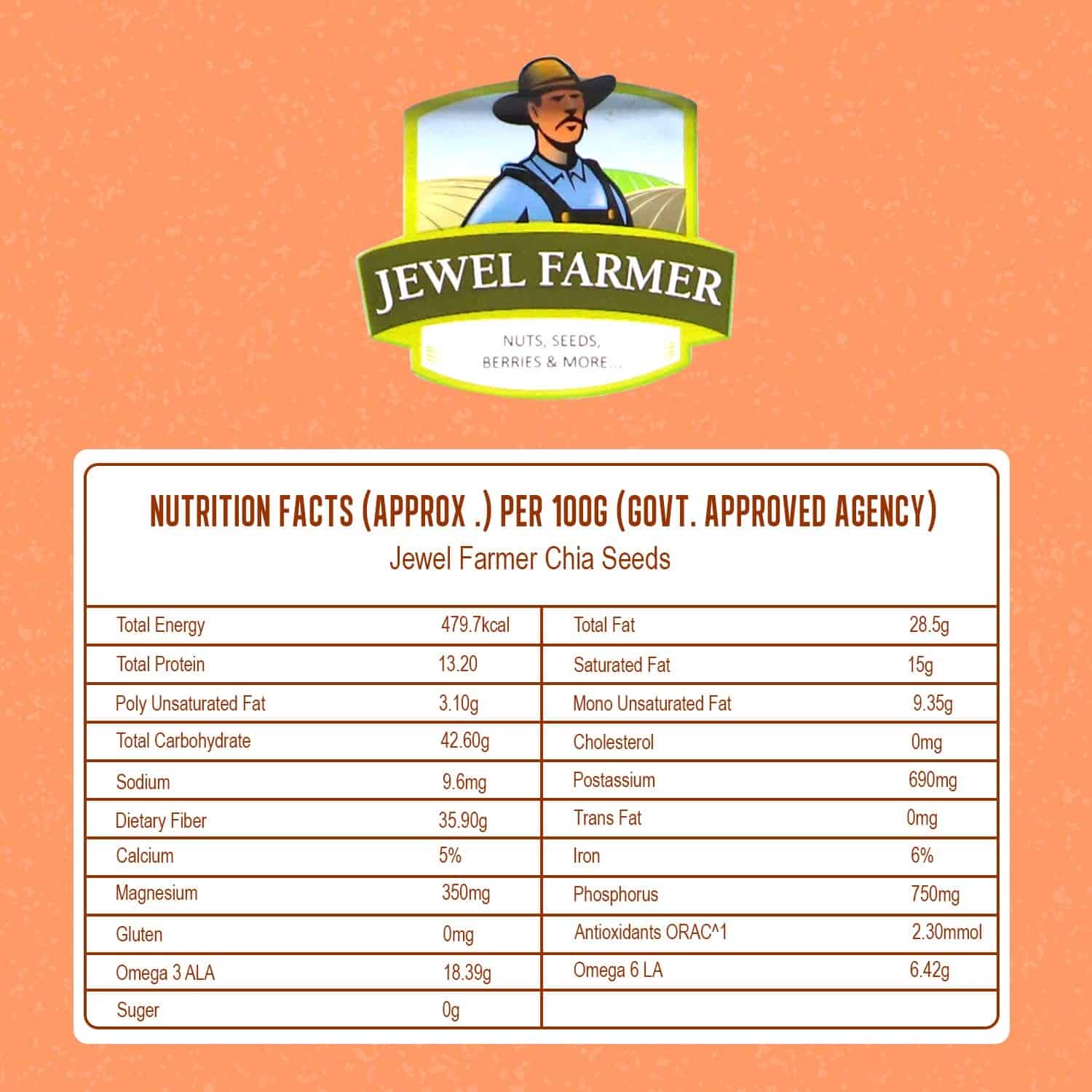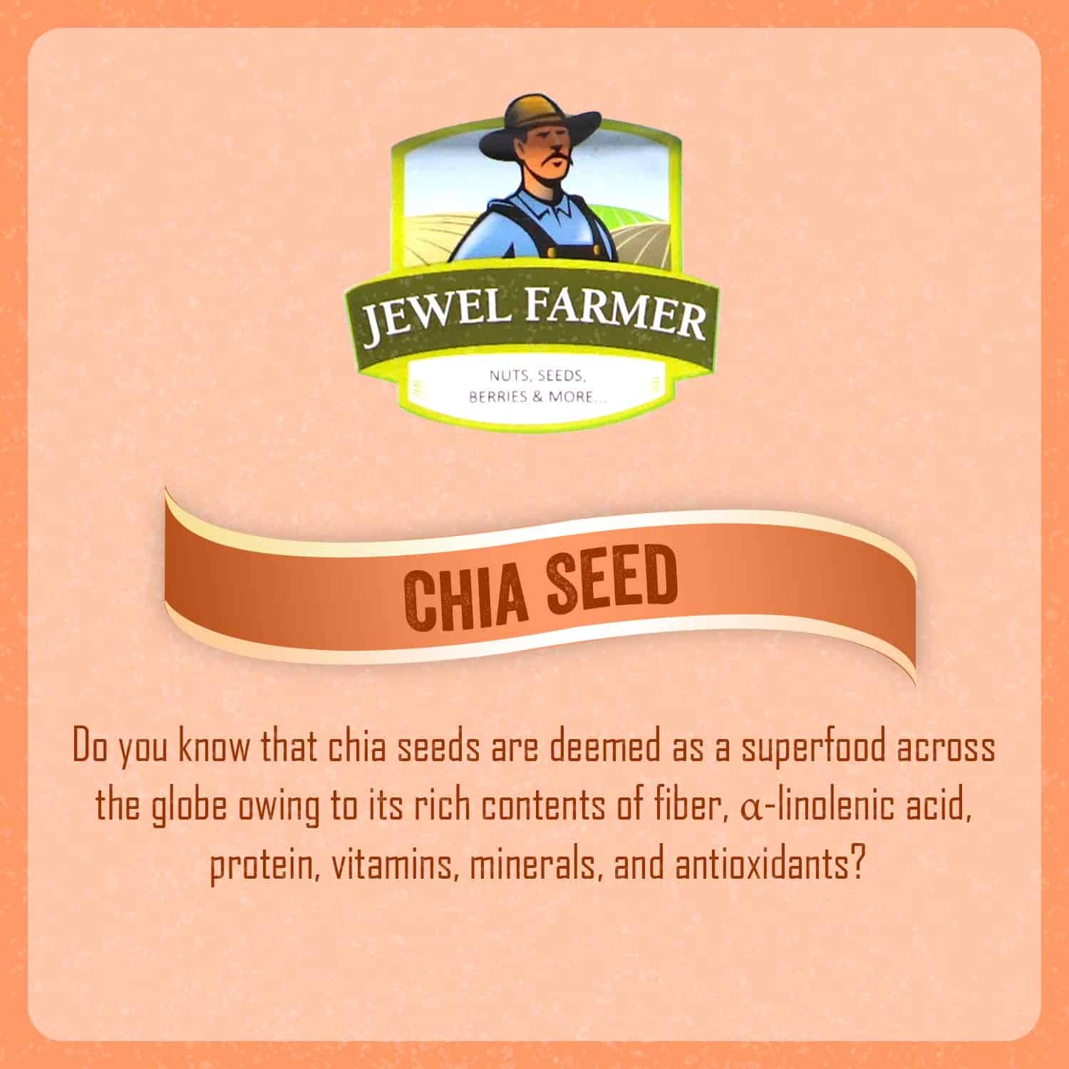 TOP QUALITY BLACK CHIA SEEDS: JEWEL FARMER is providing one of the most nutritional seeds of nature i.e. chia. Being an excellent source of plant-based protein and immense number of other nutrients it helps in boosting the body functions especially of heart, brain and stomach.