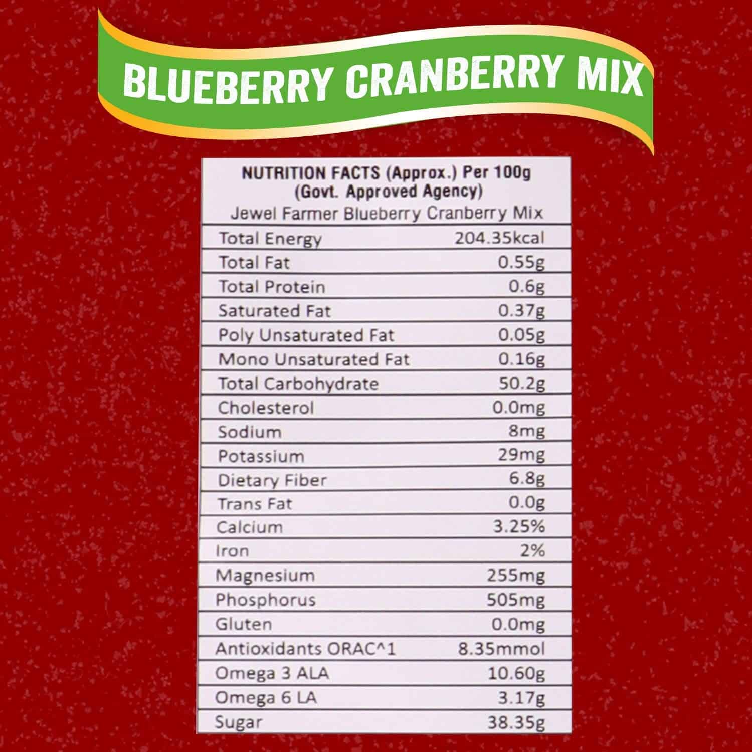 EXCELLENT QUALITY: Finesse quality Blueberries and Cranberries are brought to you by Jewel Farmer which is 100% natural, fresh, and delicious. Being a rich source of energy, minerals, antioxidants, and vitamins, these cranberries will keep you charged all day.