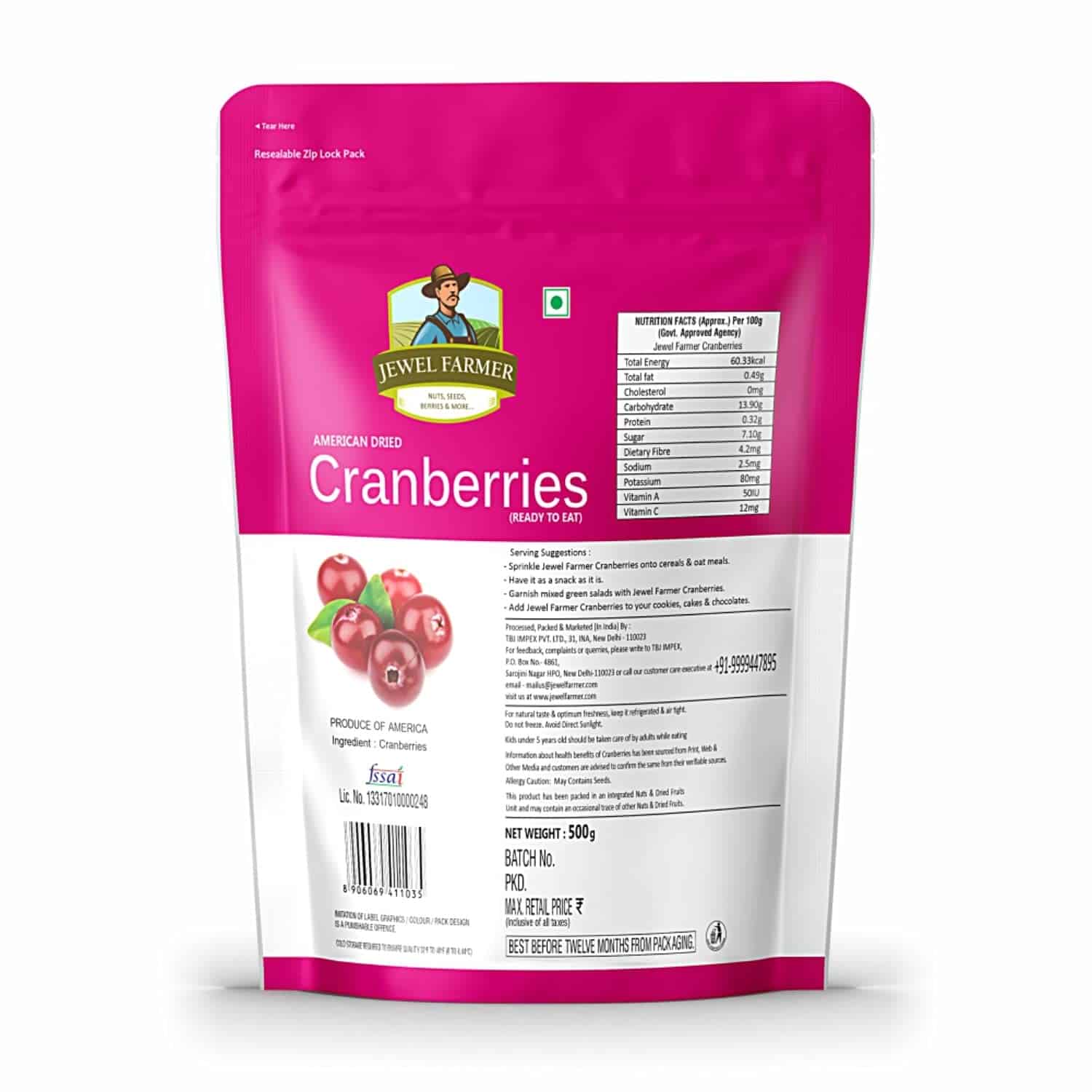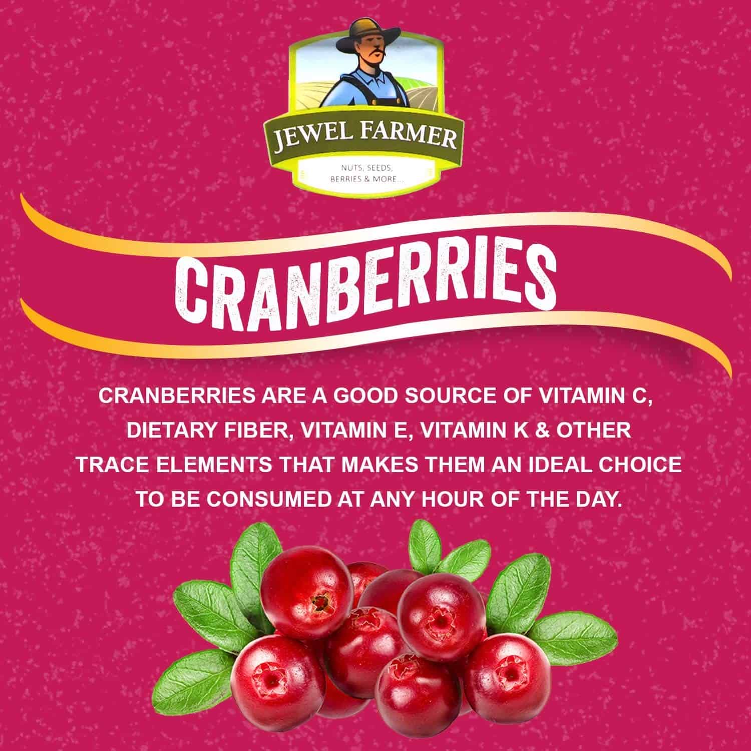 EXCELLENT QUALITY: Finesse quality Cranberries are brought to you by Jewel Farmer which is 100% natural, fresh, and delicious. Being a rich source of energy, minerals, antioxidants, and vitamins, these cranberries will keep you charged all day.