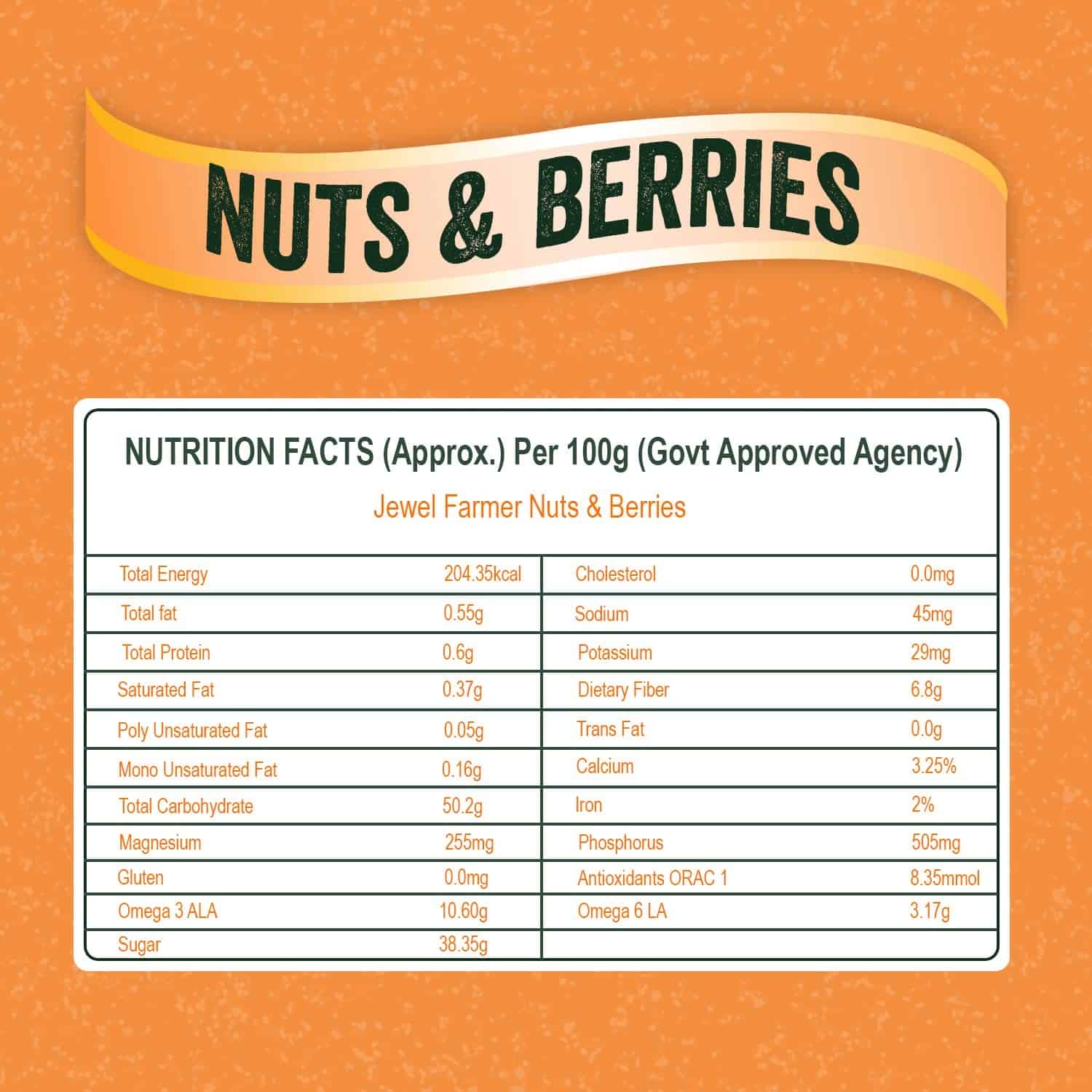 RESEALABLE ZIPLOCK BAG – As nuts and berries are meant to get ruined after getting in touch with moisture, we pack the product in ZIPLOCK BAG to make it last longer.