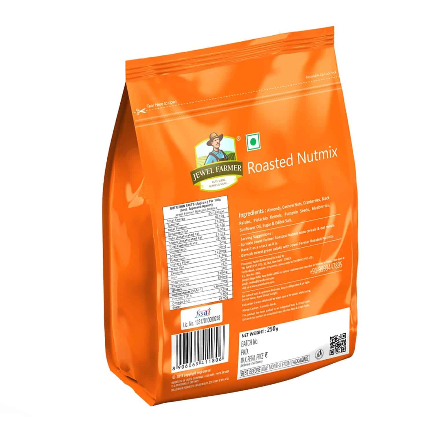 IngredientsRoasted Nutmix with Almonds, Cashew, Black raisins, Pista, Seeds & Berries