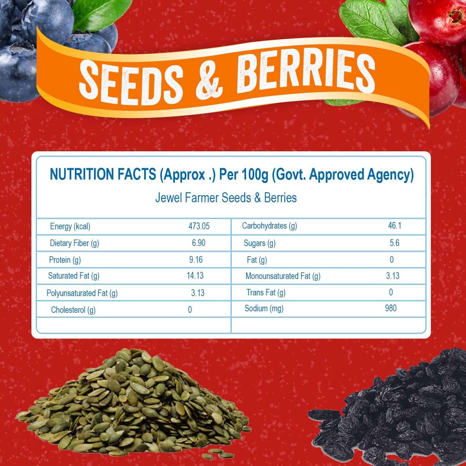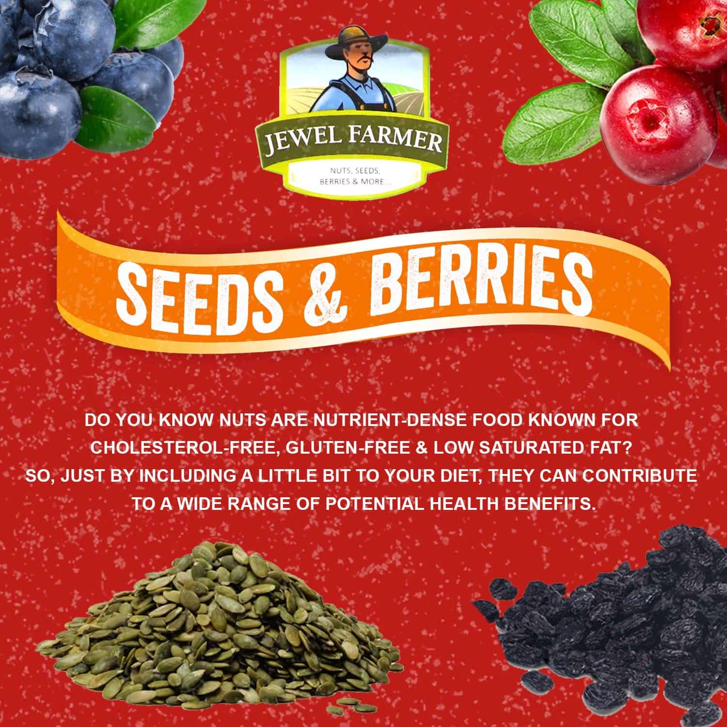 EXOTIC MIX OF SEEDS & BERRIES: Jewel Farmer is delivering supreme quality seeds and berries. With a tinge of salty and sugary taste this mix of seeds & berries is immensely nutritious and deliciously healthy. Full of health benefits this combination of seeds & berries is completely organic & fresh.