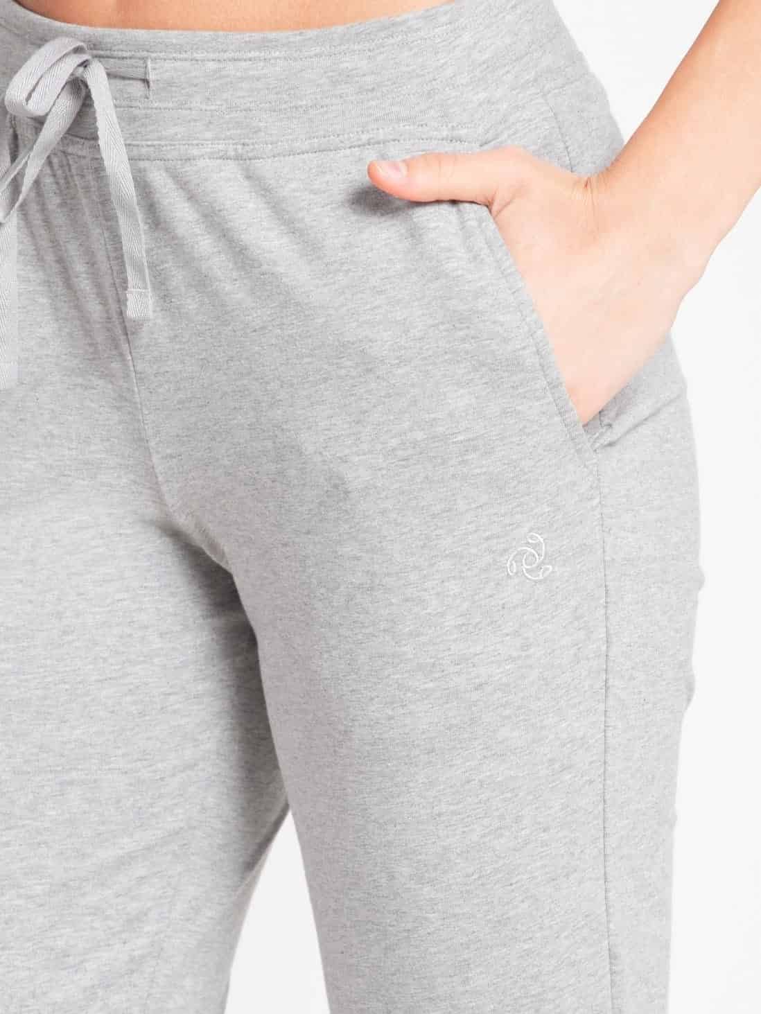 Jockey Capri Pants for Women with Pocket & Drawstring Closure - Light Grey Melange Printed Style #1300