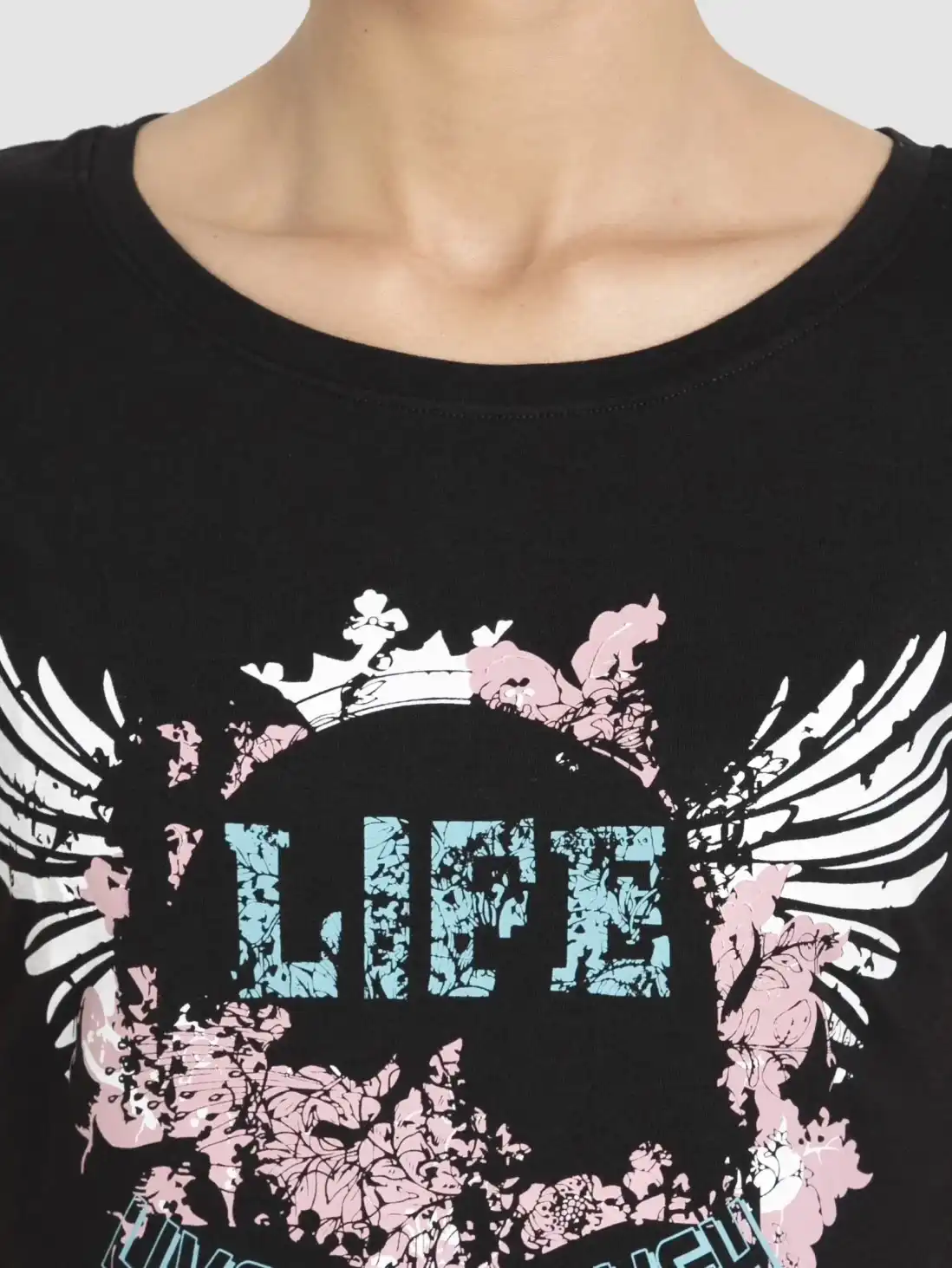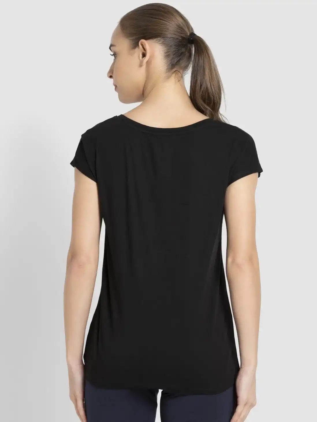 Jockey Graphic Printed Round Neck T-Shirt for Women - Black, Style #AW54 (Disclaimer: The product delivered may not of the same pattern)