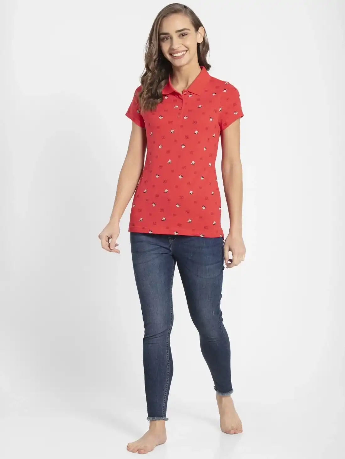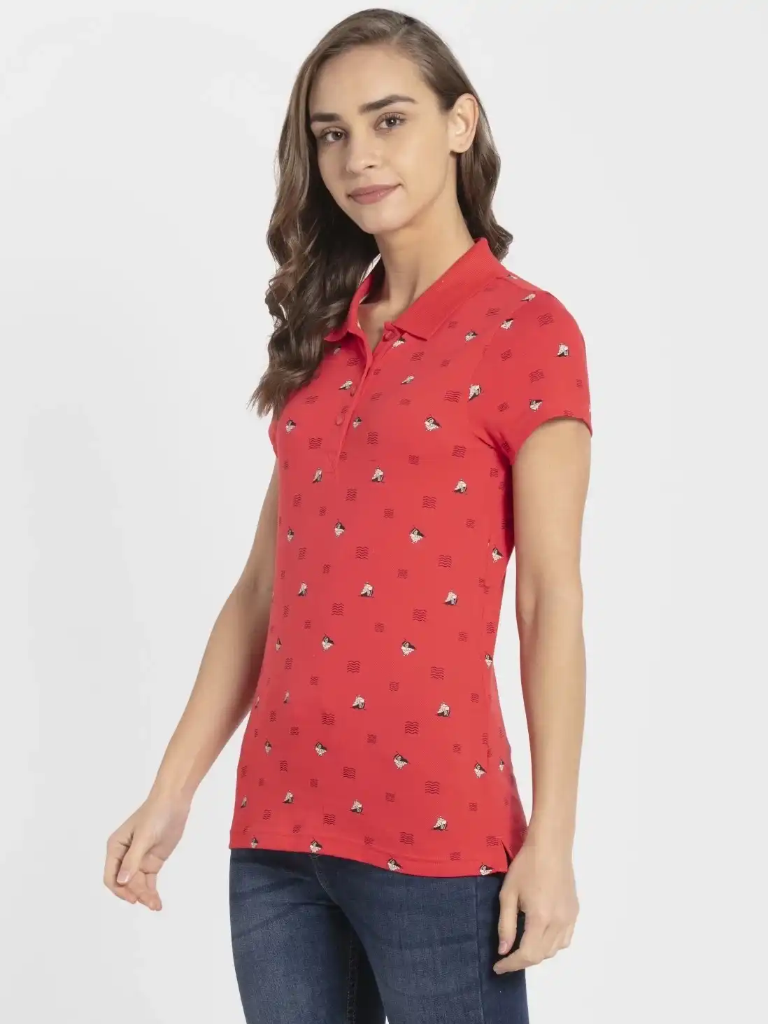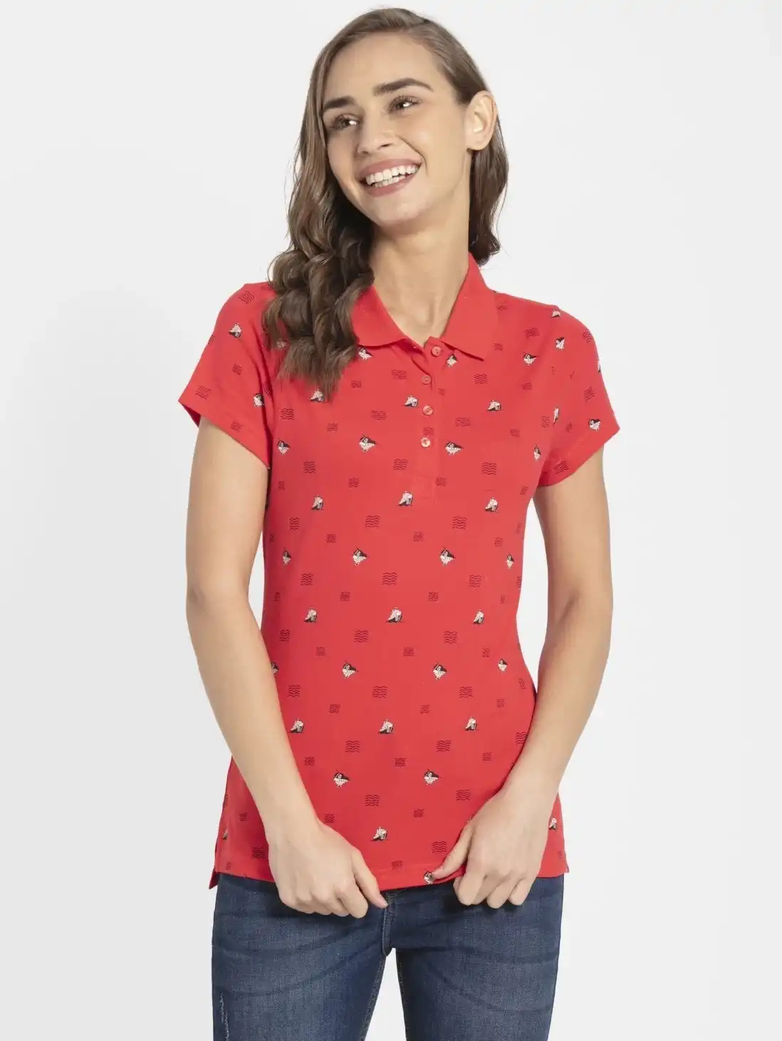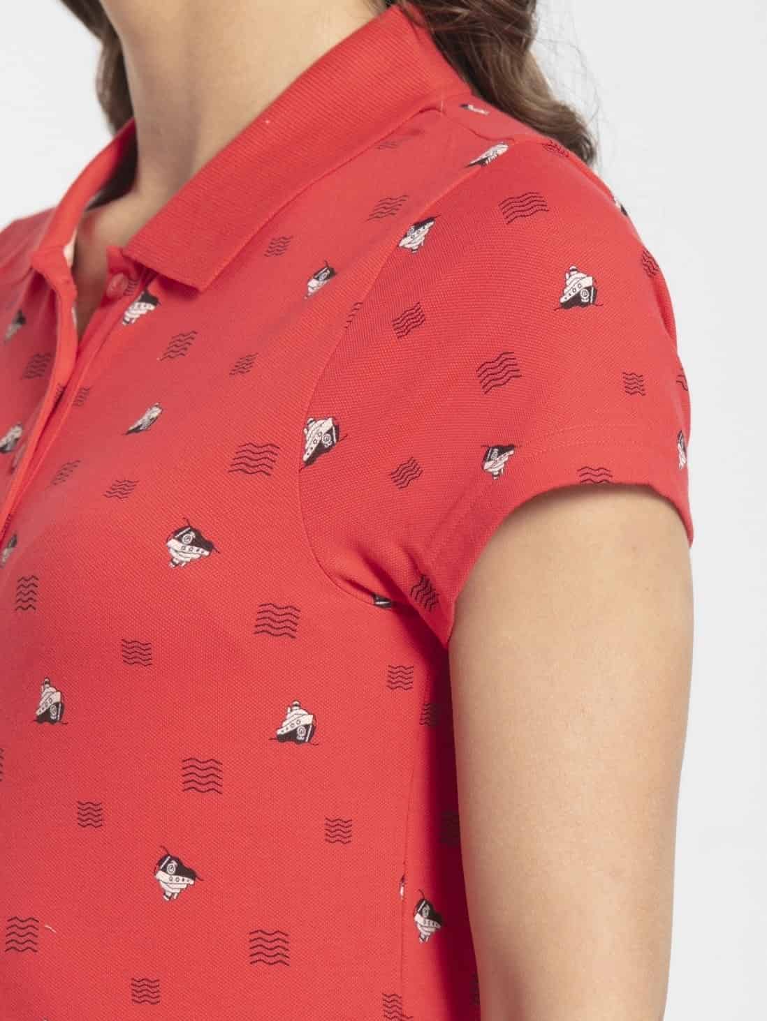 Jockey Half Sleeve Polo T-Shirt for Women - Hibiscus Assorted Prints, Style #UL34