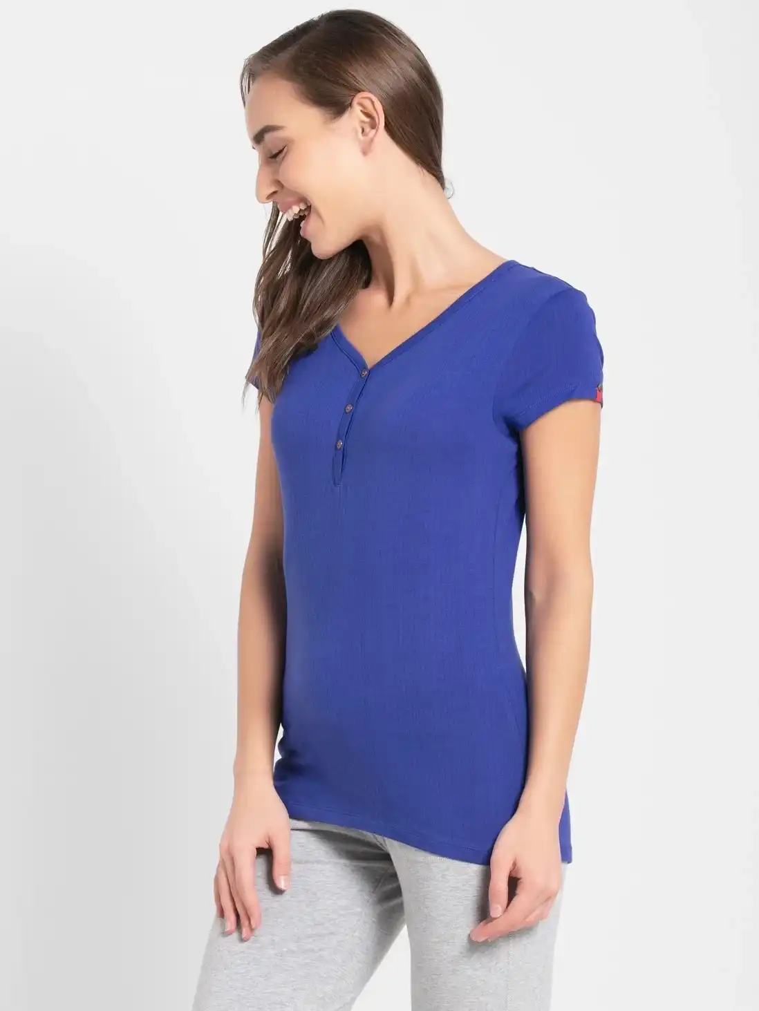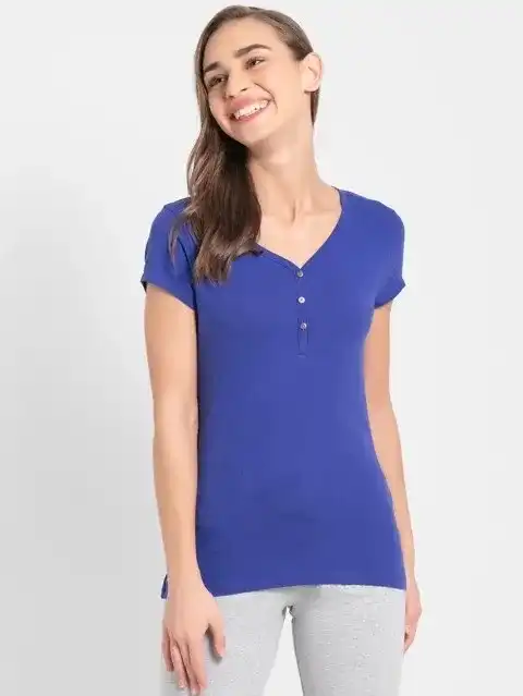 Jockey Indigo Crush Short Sleeve Slim fit henley T-shirt, Style #UL03