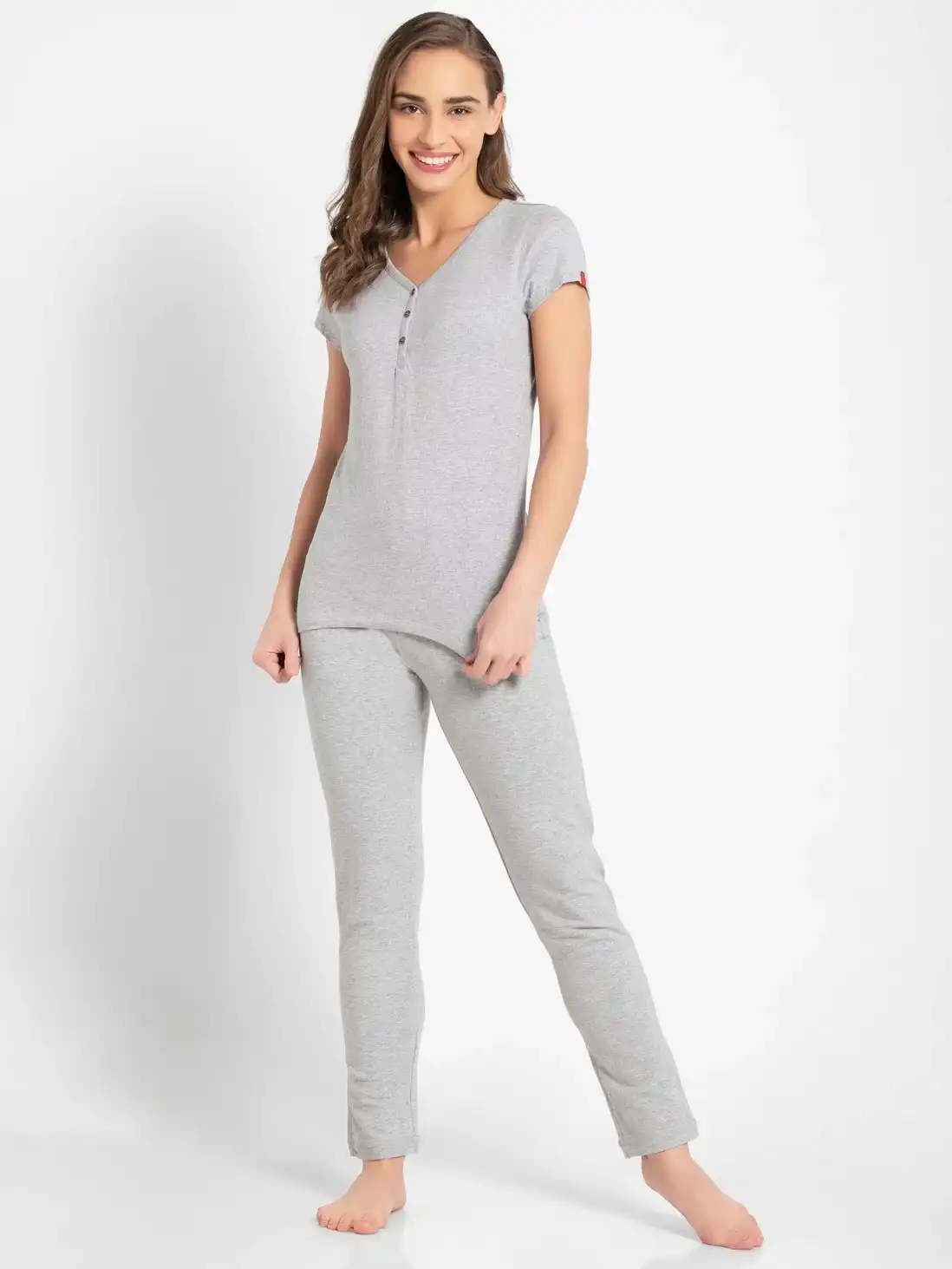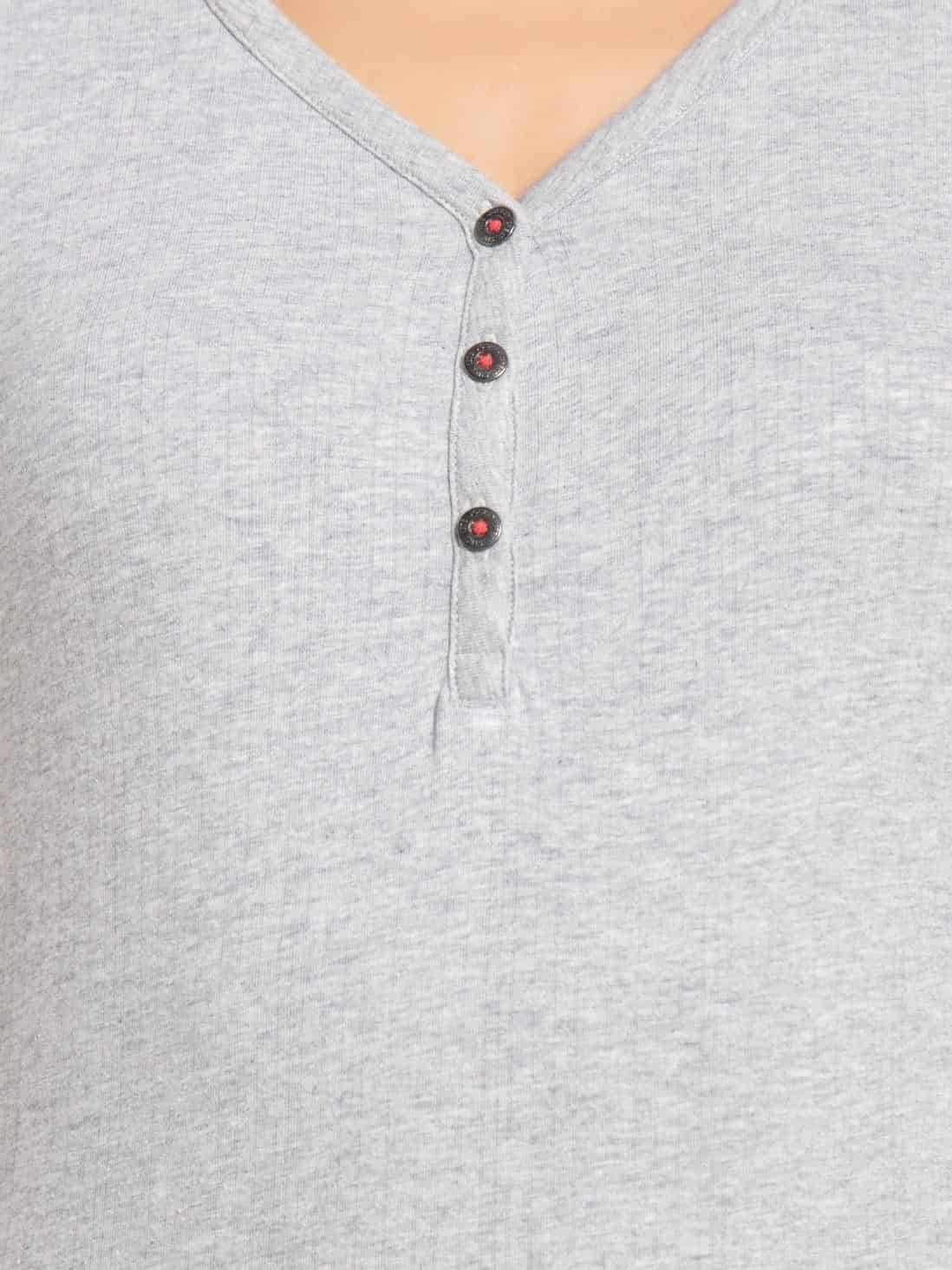 Jockey Light Grey Melange Short Sleeve Slim fit henley T-shirts, Style #UL03
