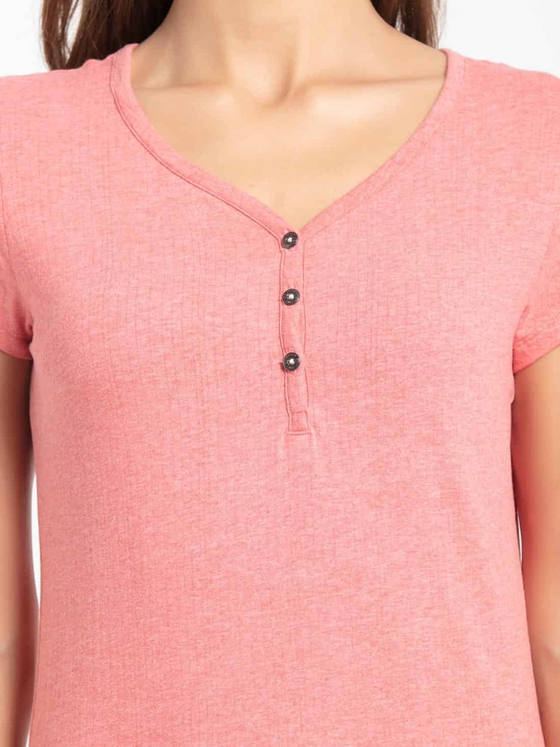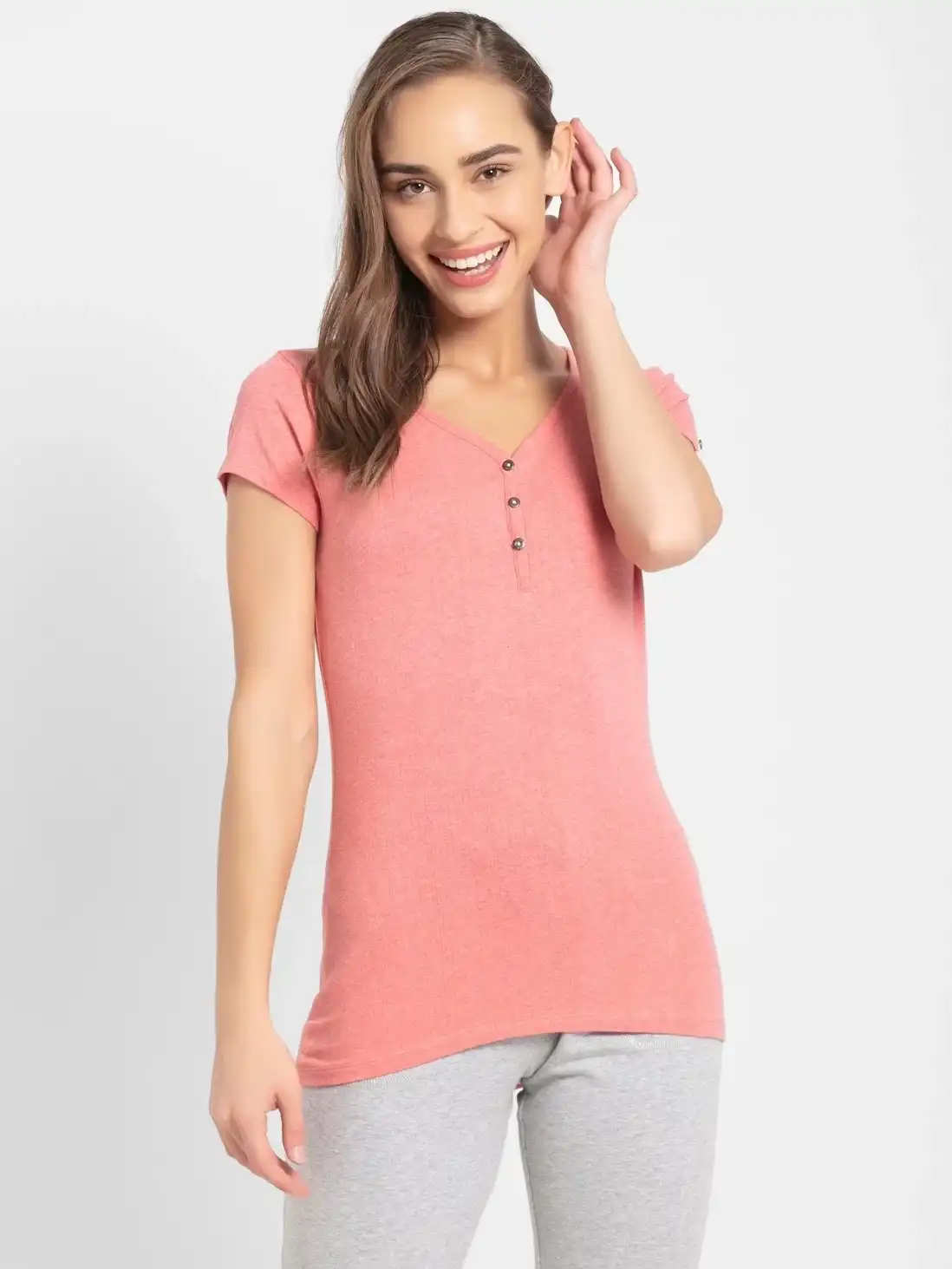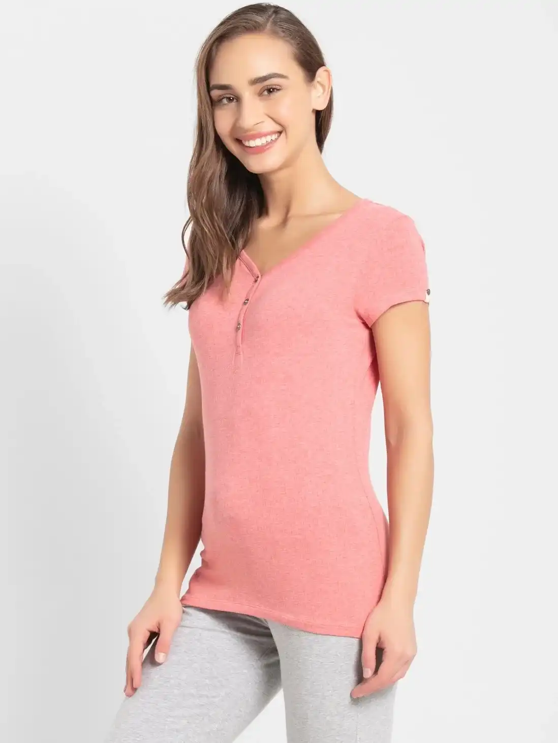 Jockey Passion Red Melange Short Sleeve Slim fit henley T-Shirt, Style #UL03