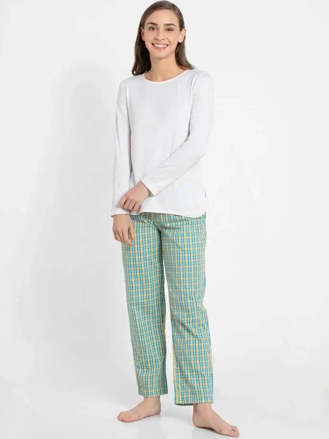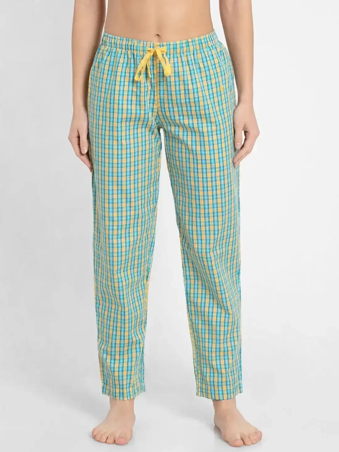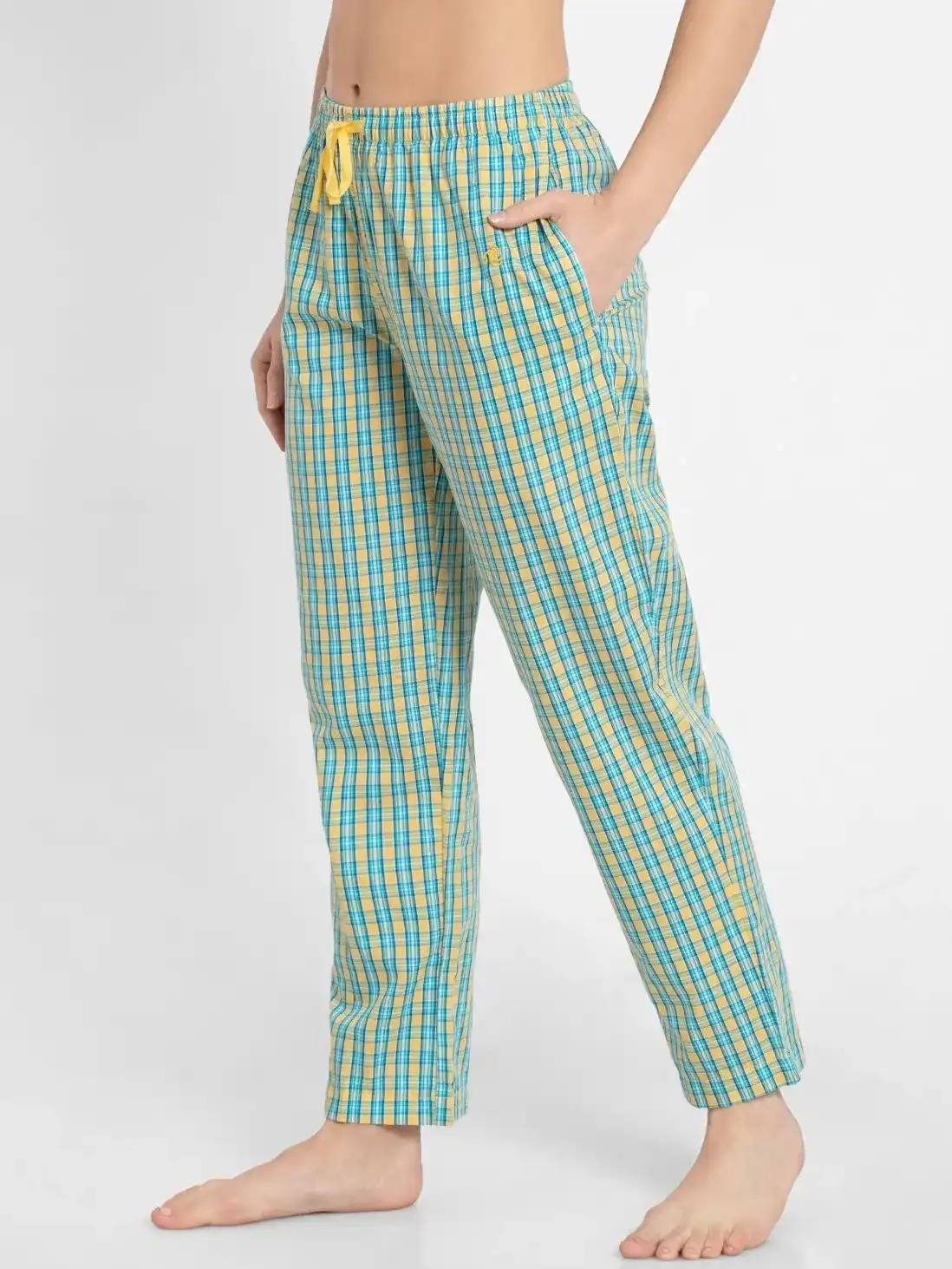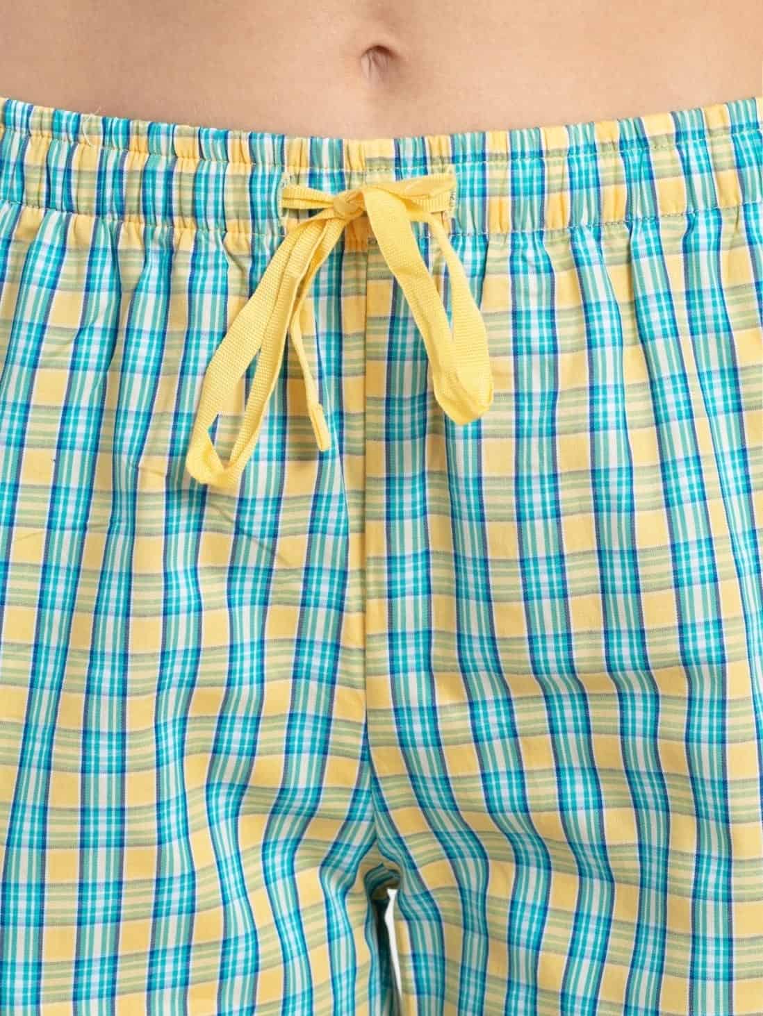 Jockey Pyjama for Women with Side Pocket & Drawstring Closure - Banana Cream Assorted Checks, Style #RX06 (Disclaimer: The product delivered may not of the same pattern)