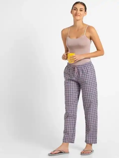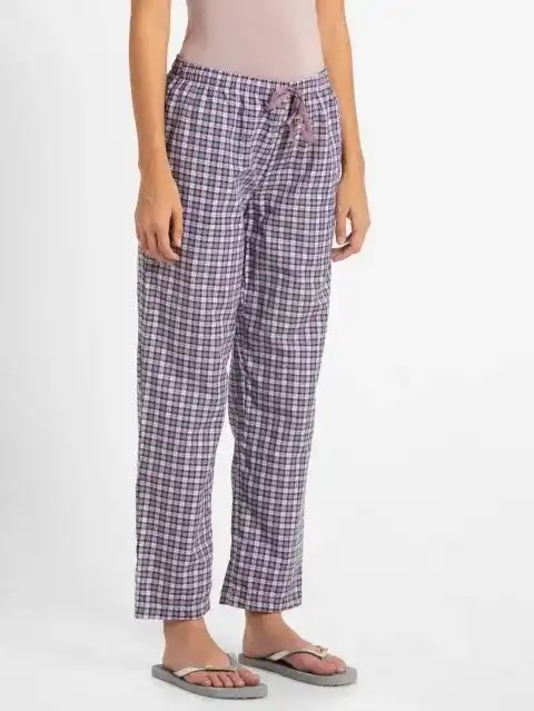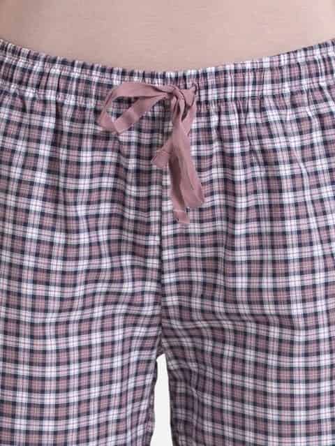Jockey Pyjama for Women with Side Pocket & Drawstring Closure - Old Rose Assorted Checks, Style #RX06