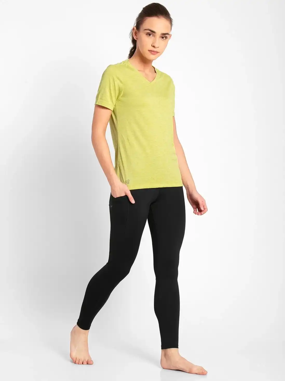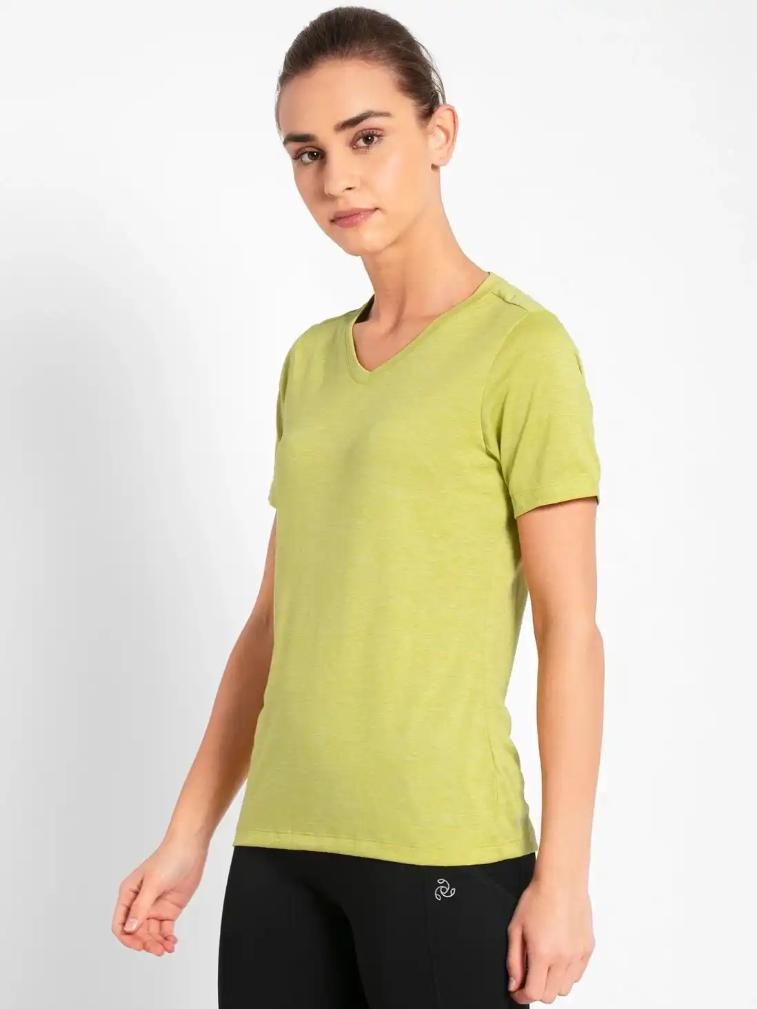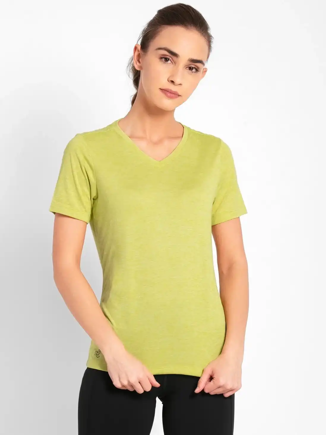 Jockey Relaxed Fit V Neck Half Sleeve T-Shirt for Women - Green Glow, Style #MW01