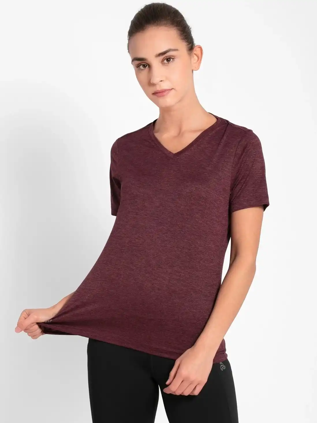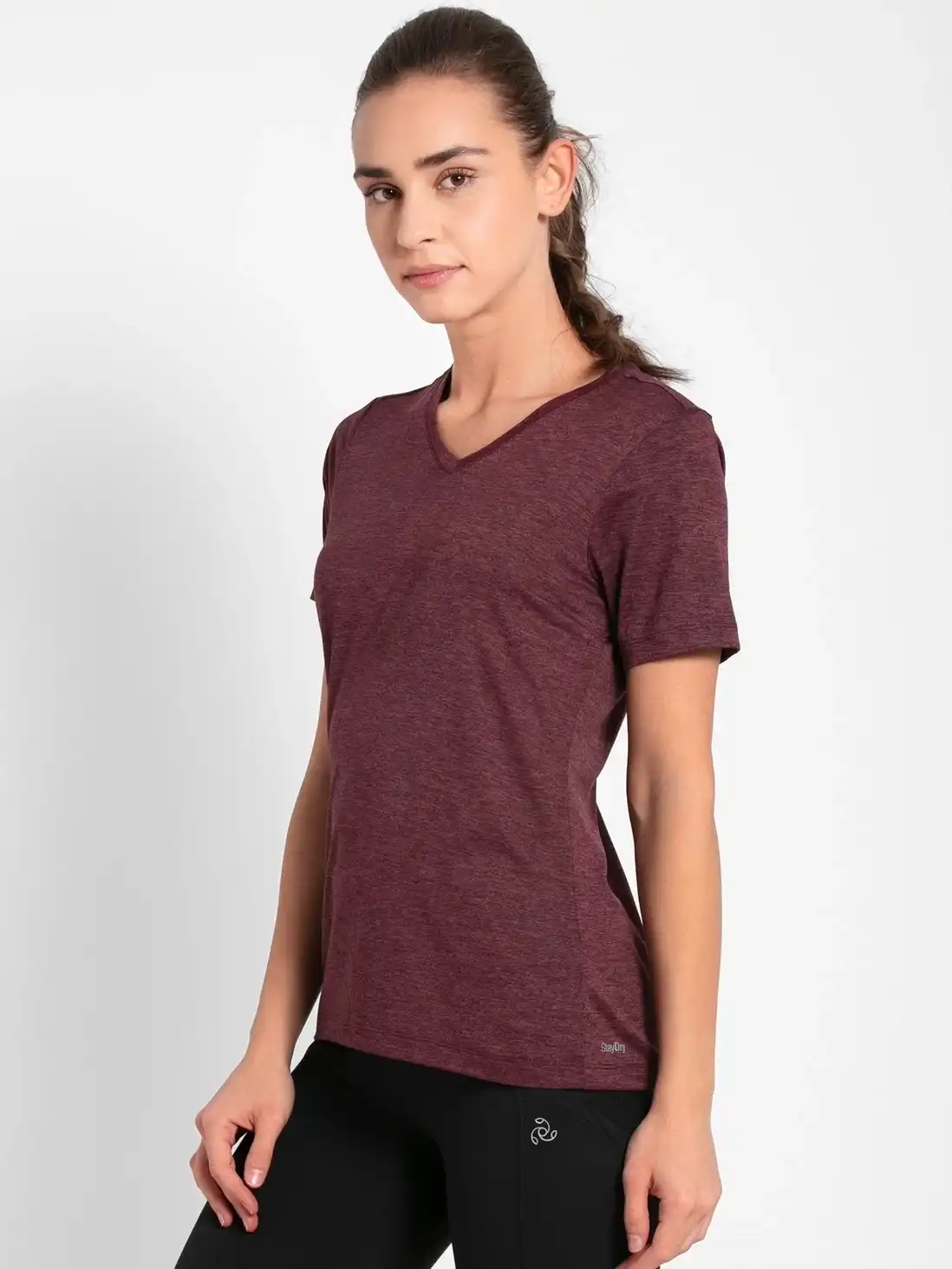 Jockey Relaxed Fit V Neck Half Sleeve T-Shirt for Women - Wine Tasting, Style #MW01