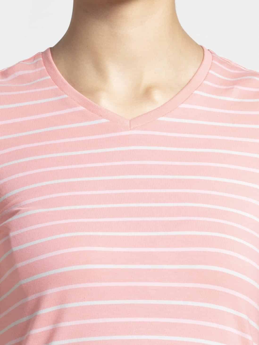 Jockey Ribbed V Neck Half Sleeve T-Shirt for Women - Peach Blossom, Style #AW22