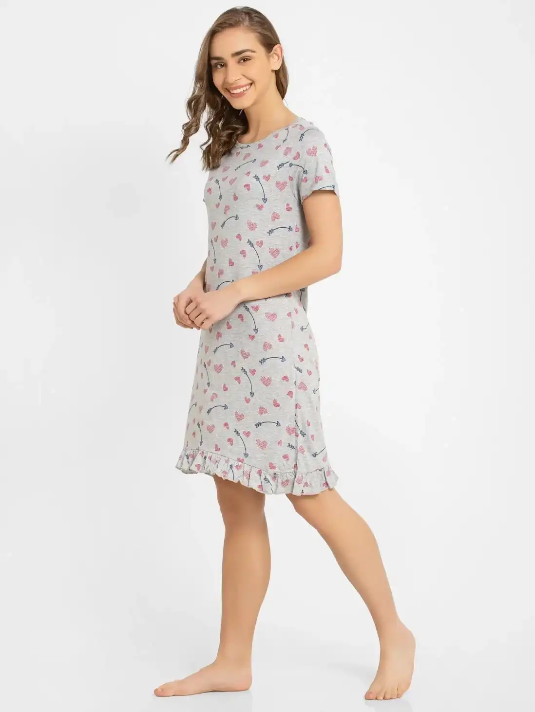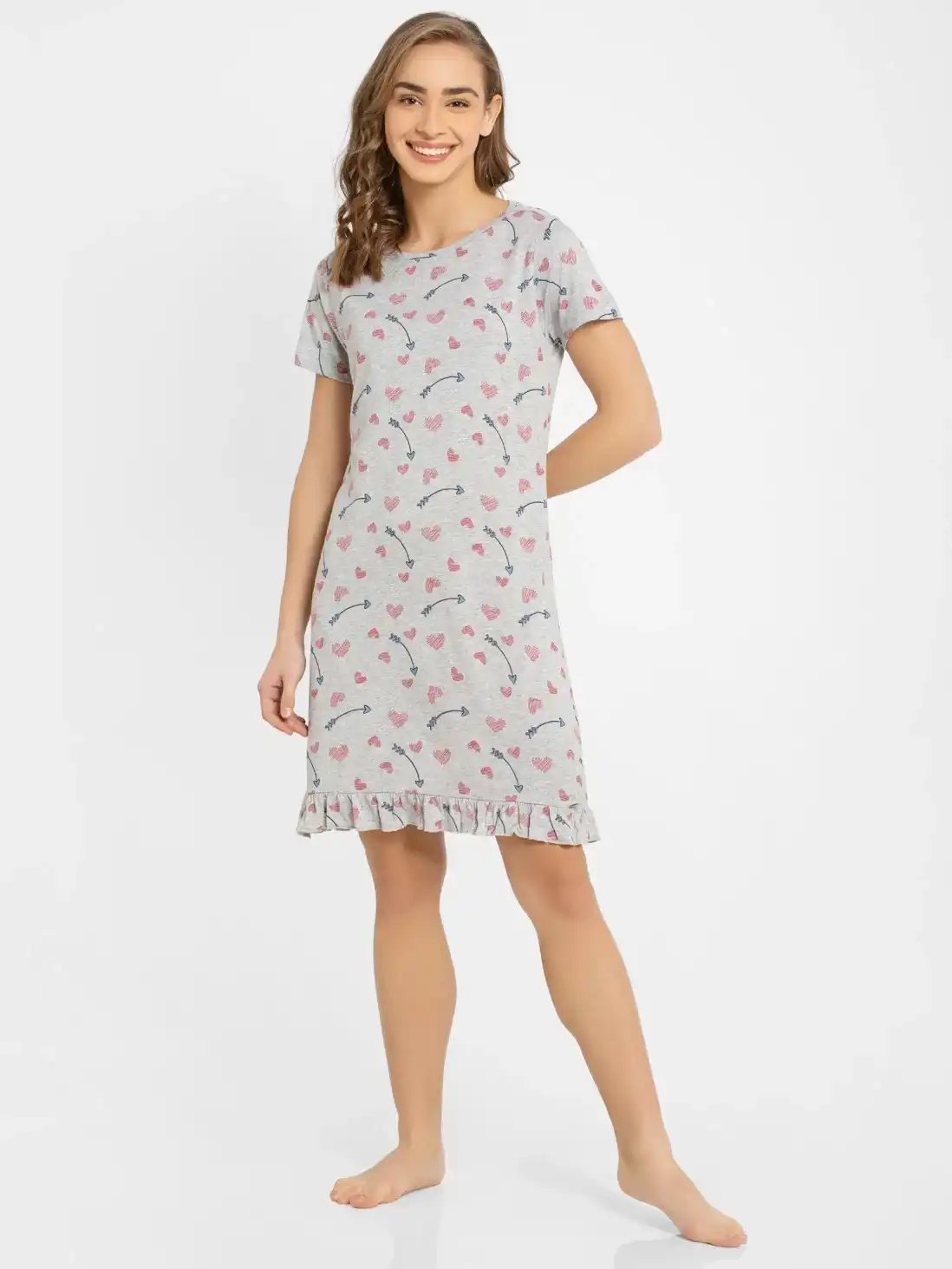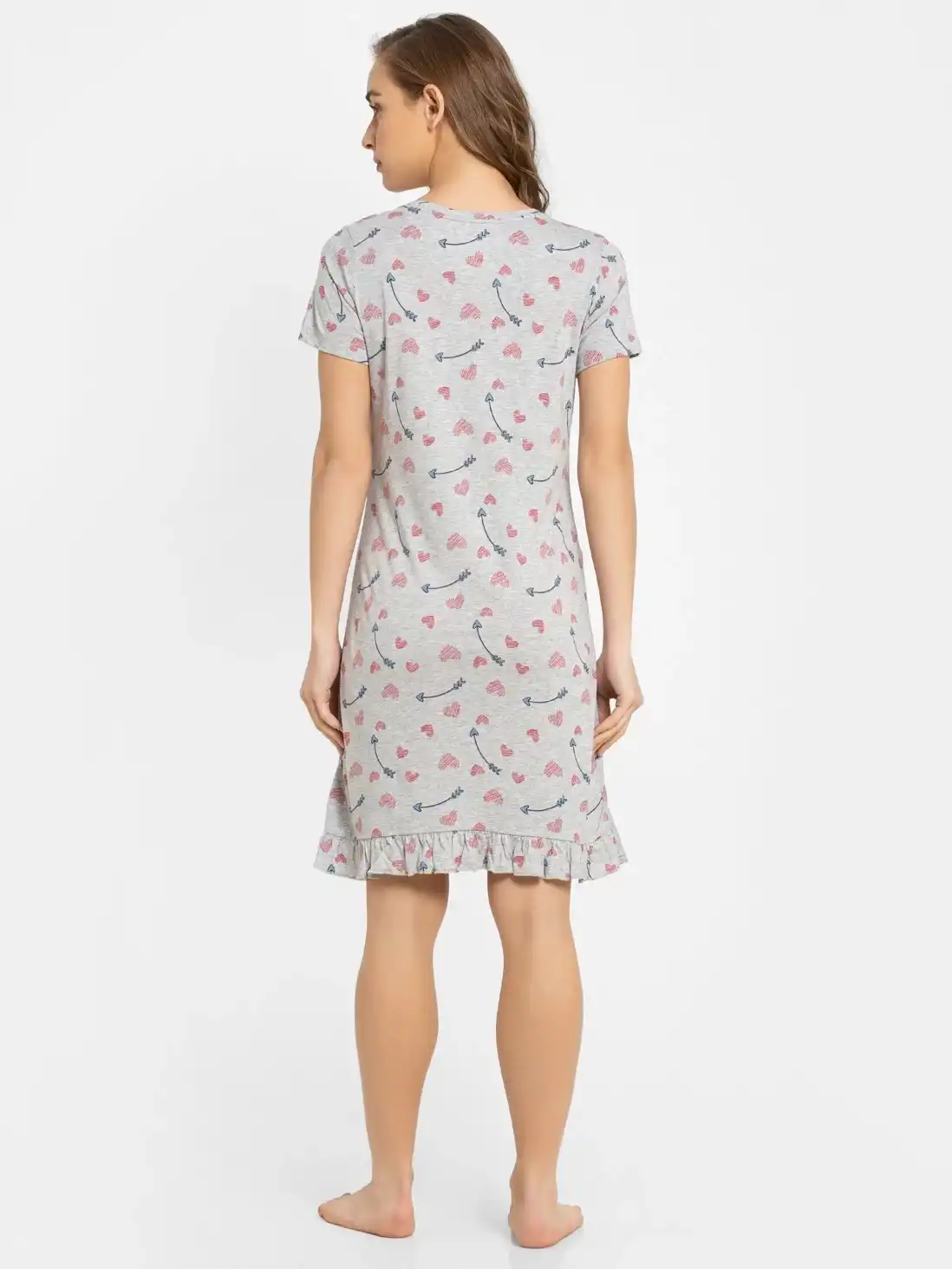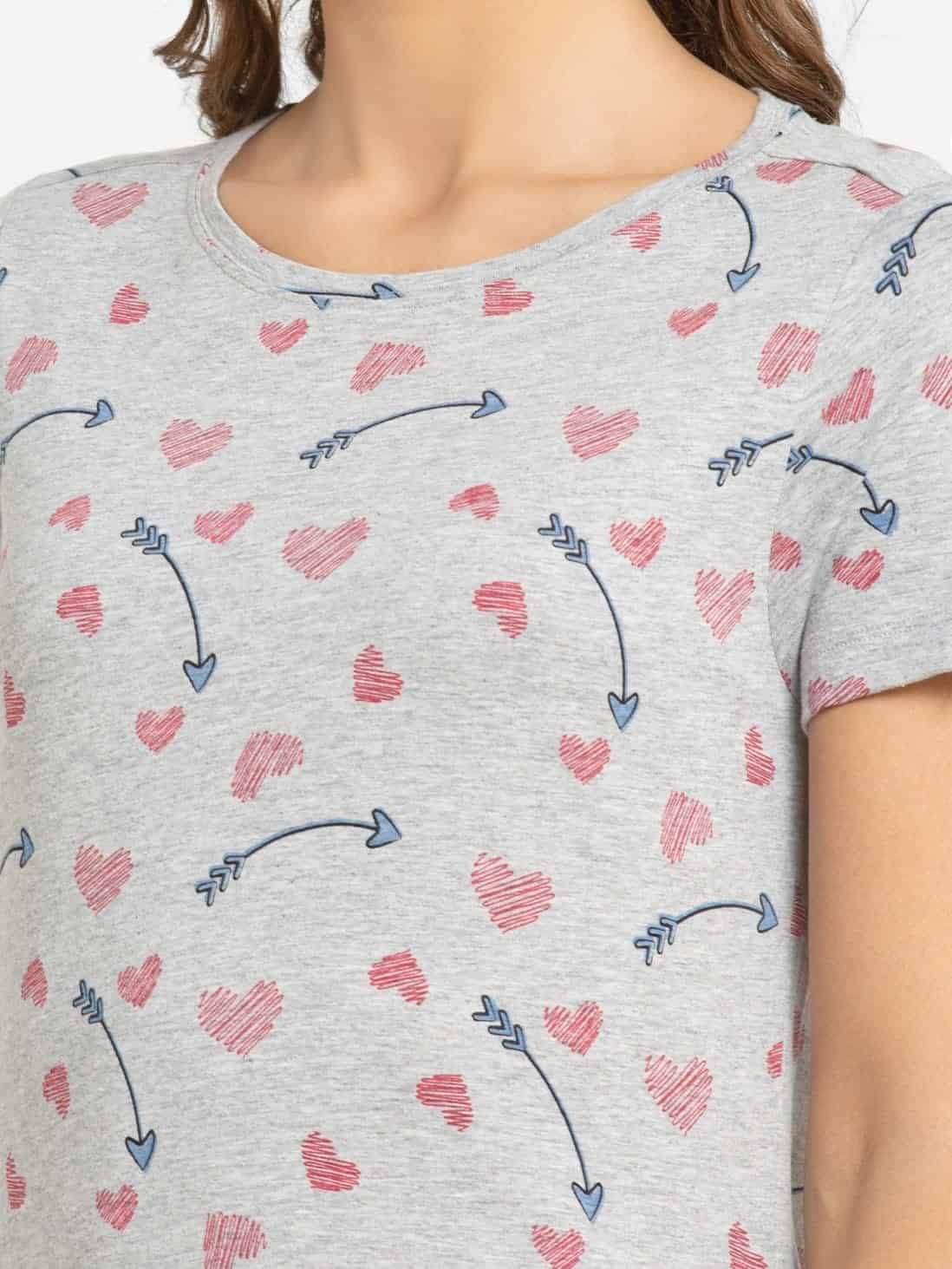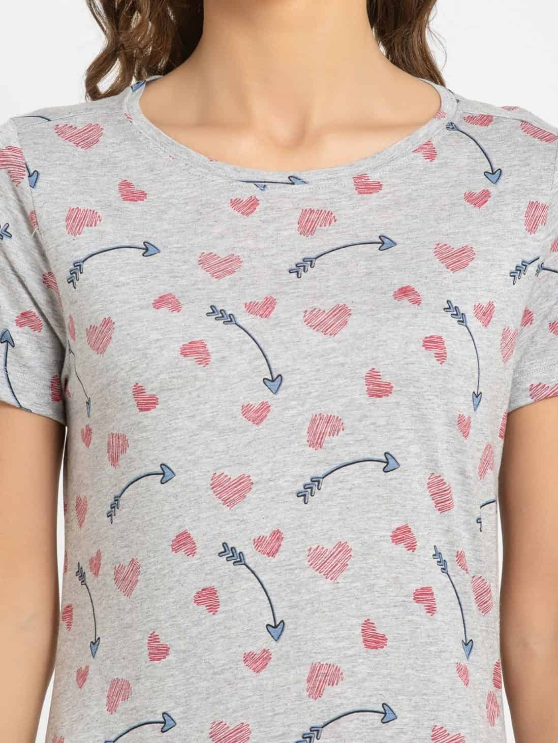 Jockey Round Neck Half Sleeve Sleep Dress for Women - Light Grey Melange Assorted Prints, Style #RX25 (Disclaimer: The product delivered may not of the same pattern)