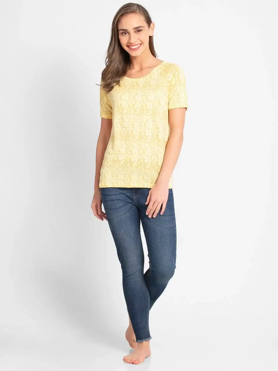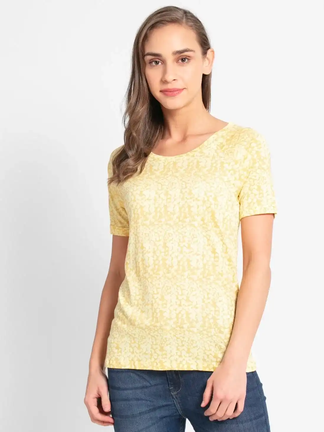 Jockey Round Neck Half Sleeve T-Shirt for Women - Banana Cream, Style #AW13