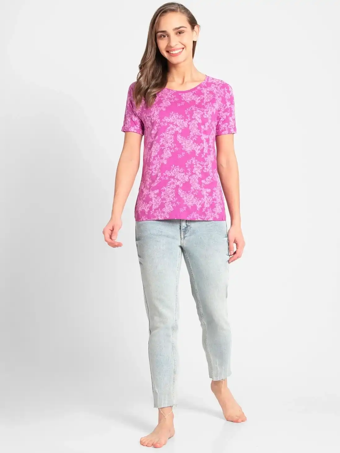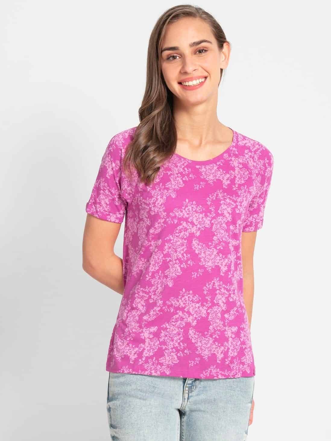 Jockey Round Neck Half Sleeve T-Shirt for Women - Lavender Scent, Style #AW13