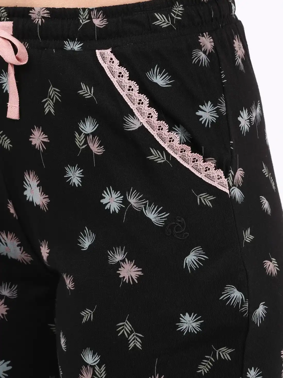 Front off-seam pockets trimmed with a delicate lace edge