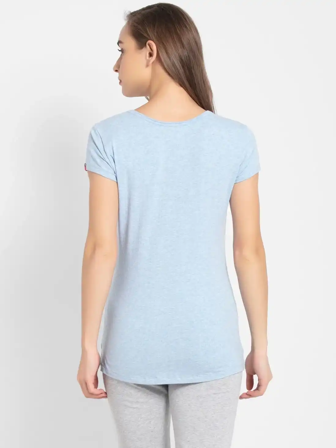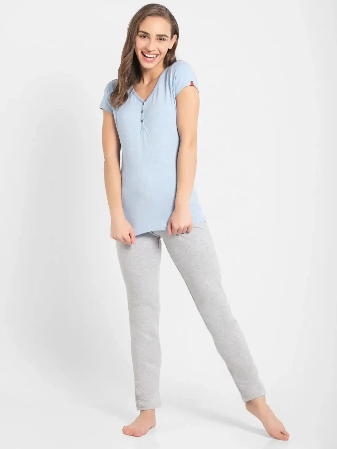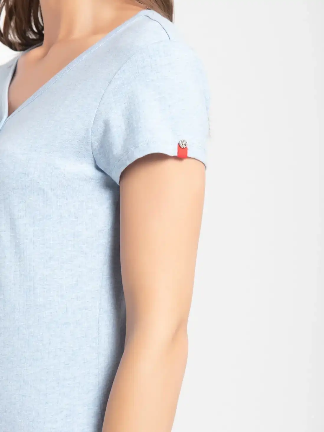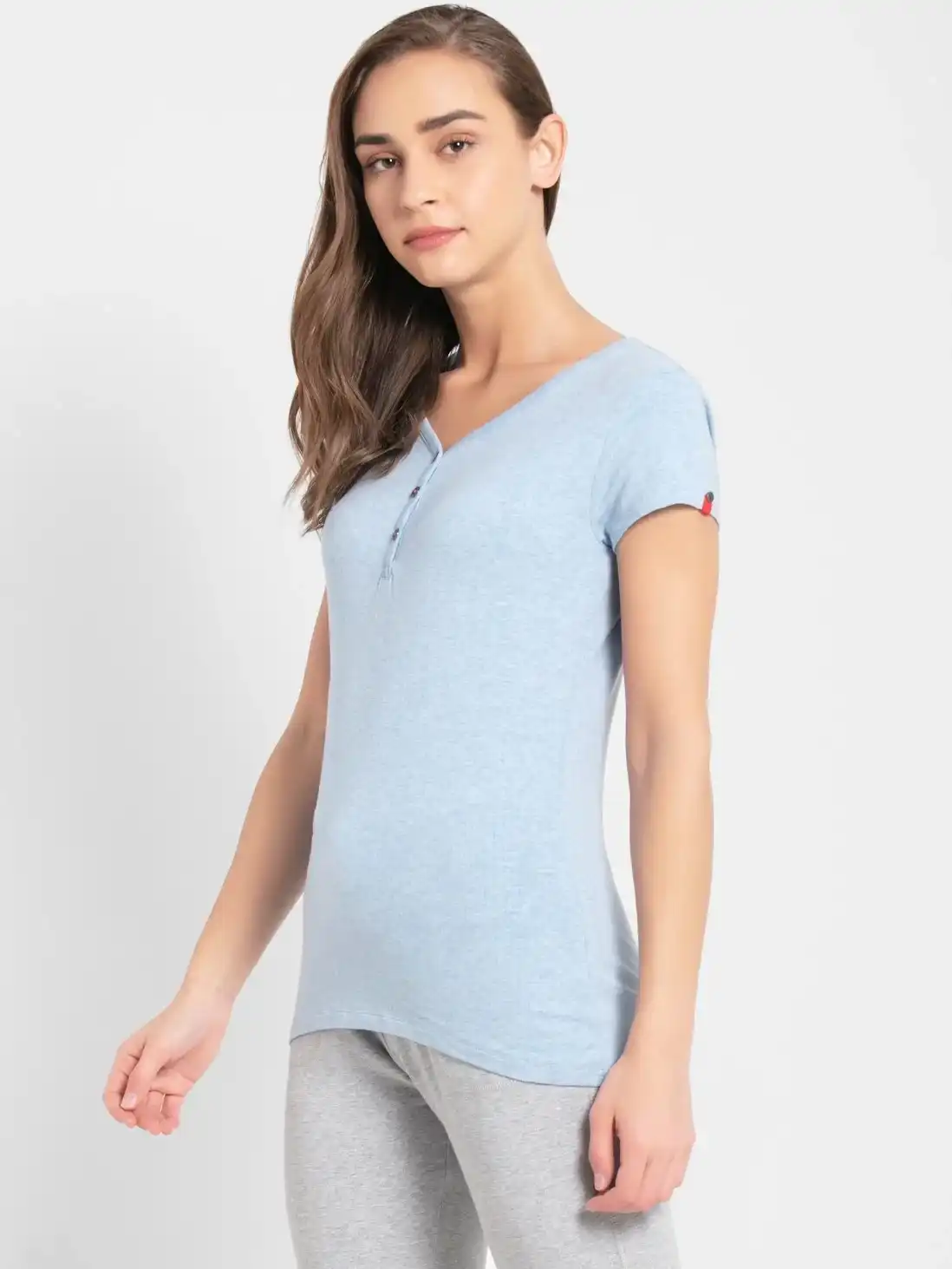 Jockey Sky Blue Melange Short Sleeve Slim fit henley T-Shirt, Style #UL03