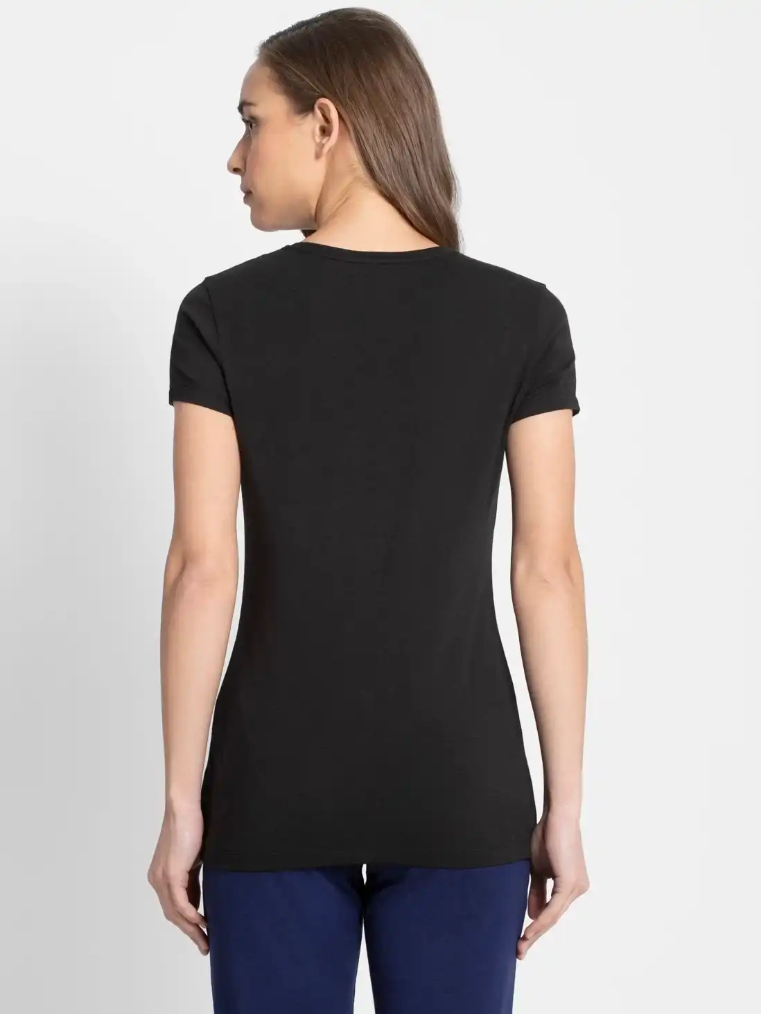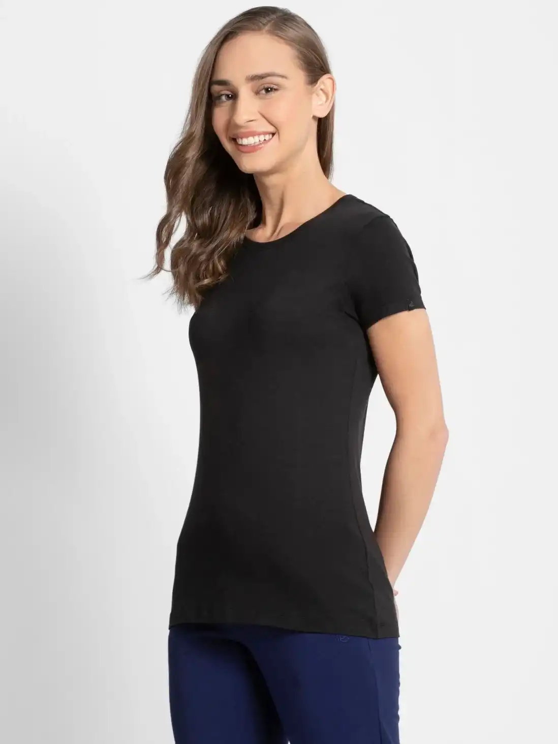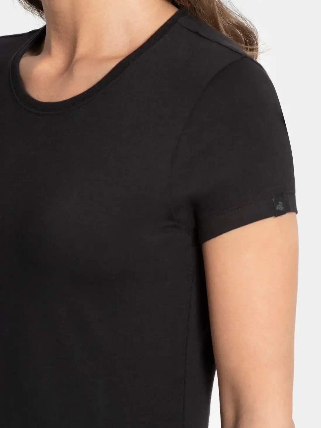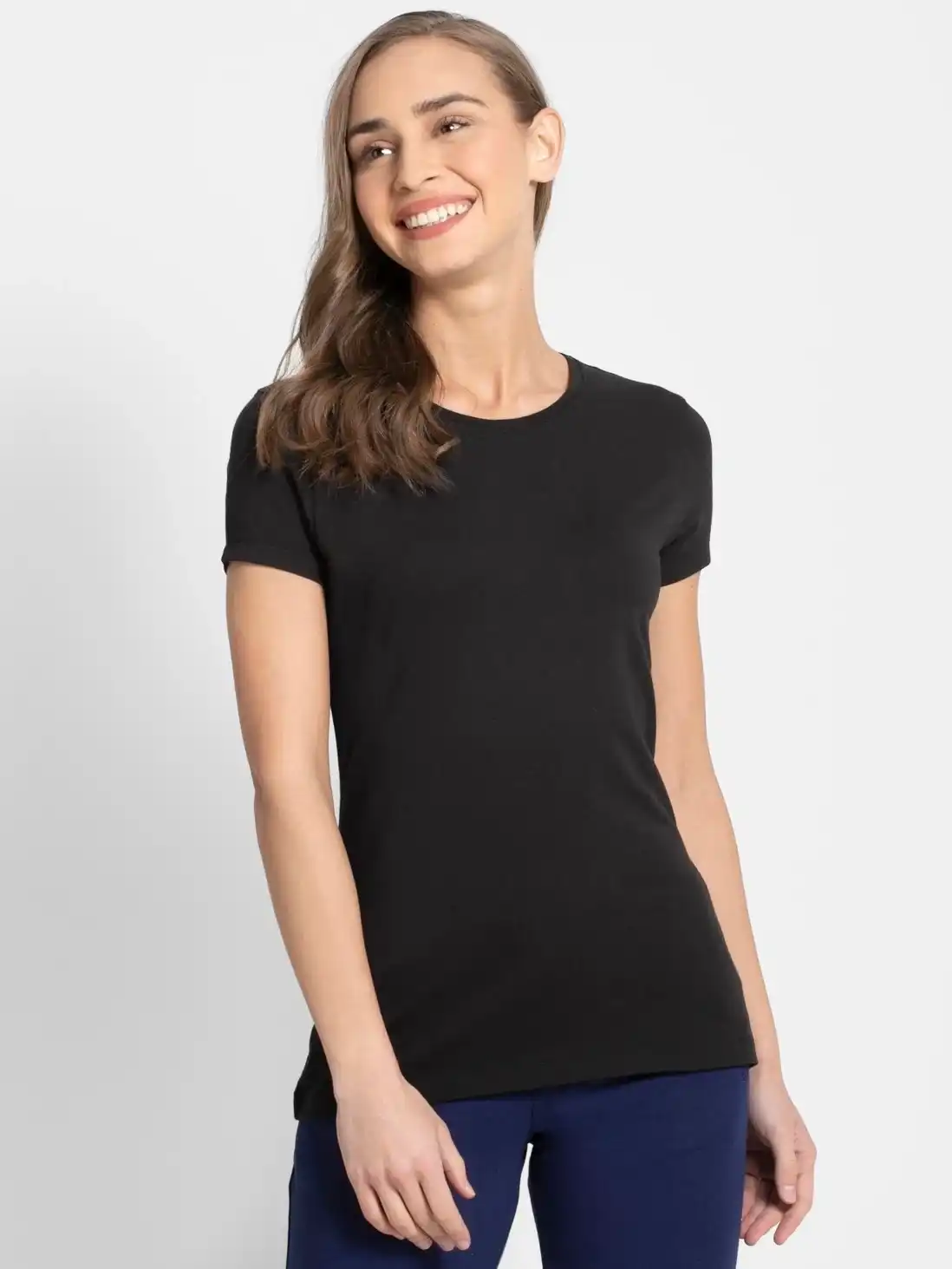 Jockey Solid Round Neck Half Sleeve T-Shirt for Women - Black, Style #1515
