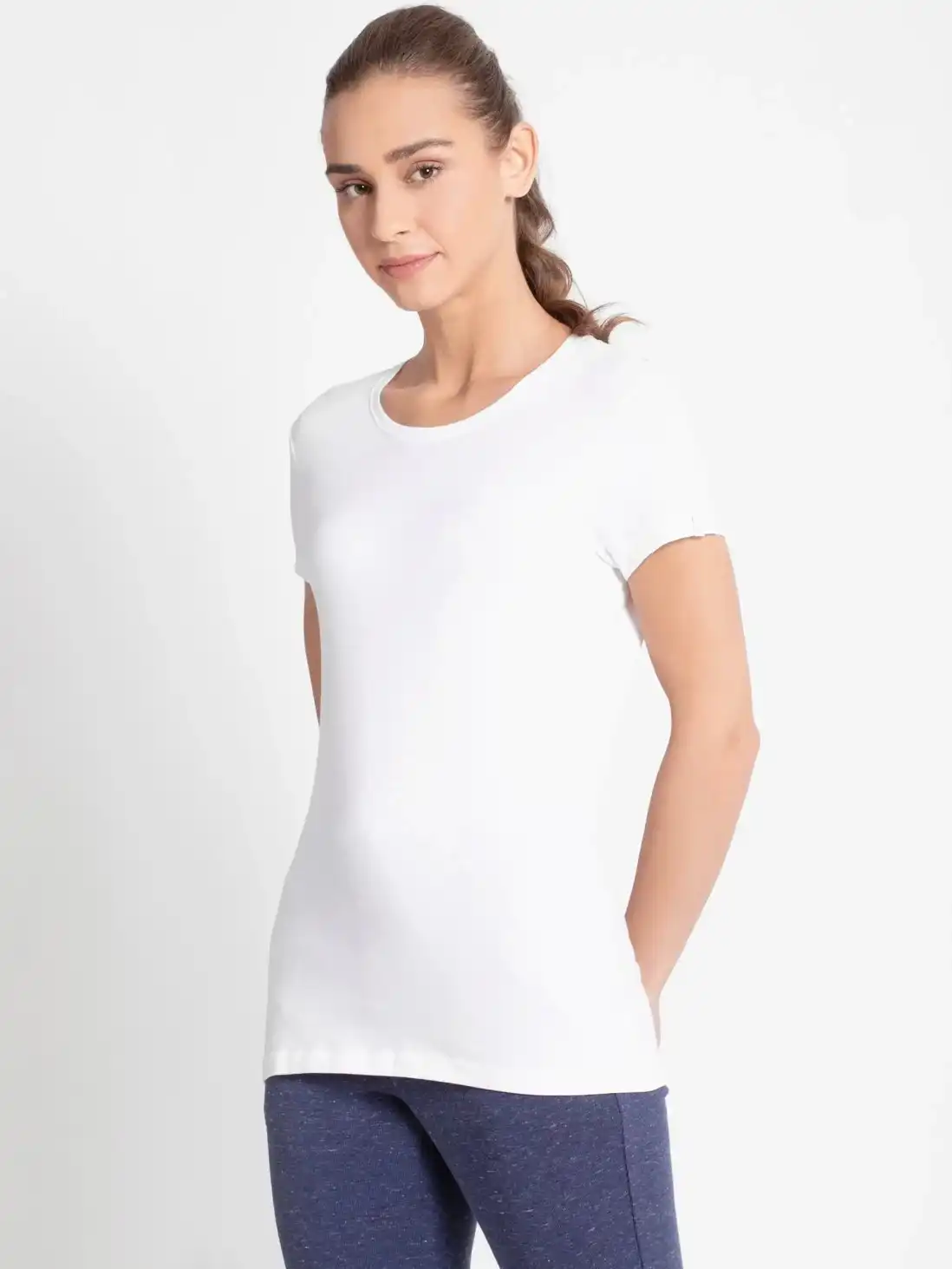Jockey Solid Round Neck Half Sleeve T-Shirt for Women - White, Style #1515