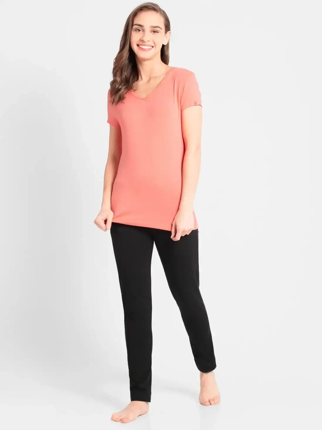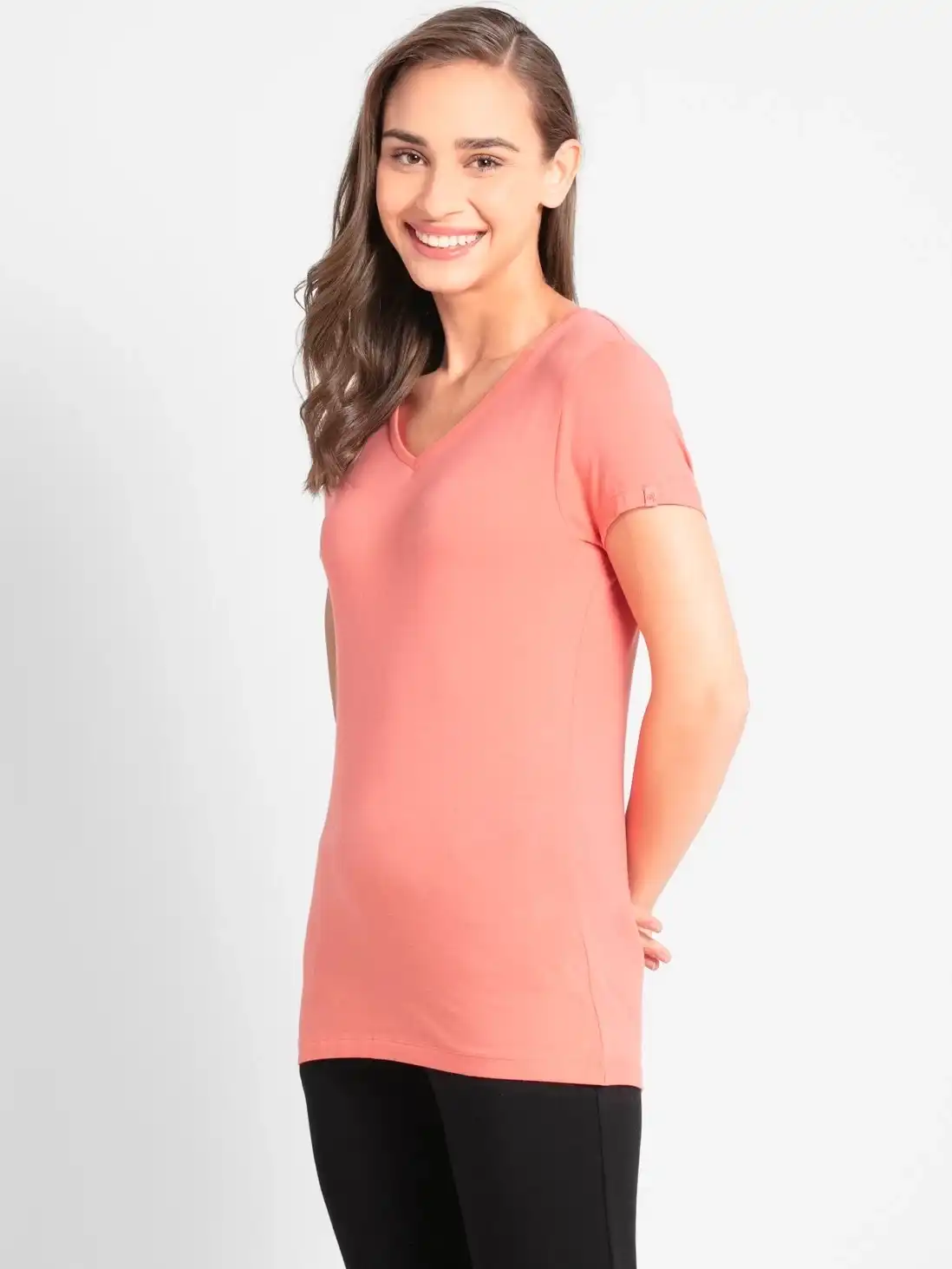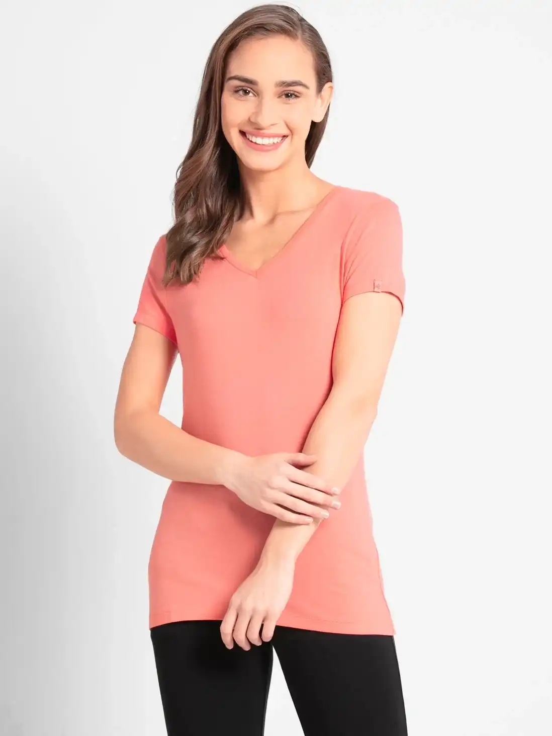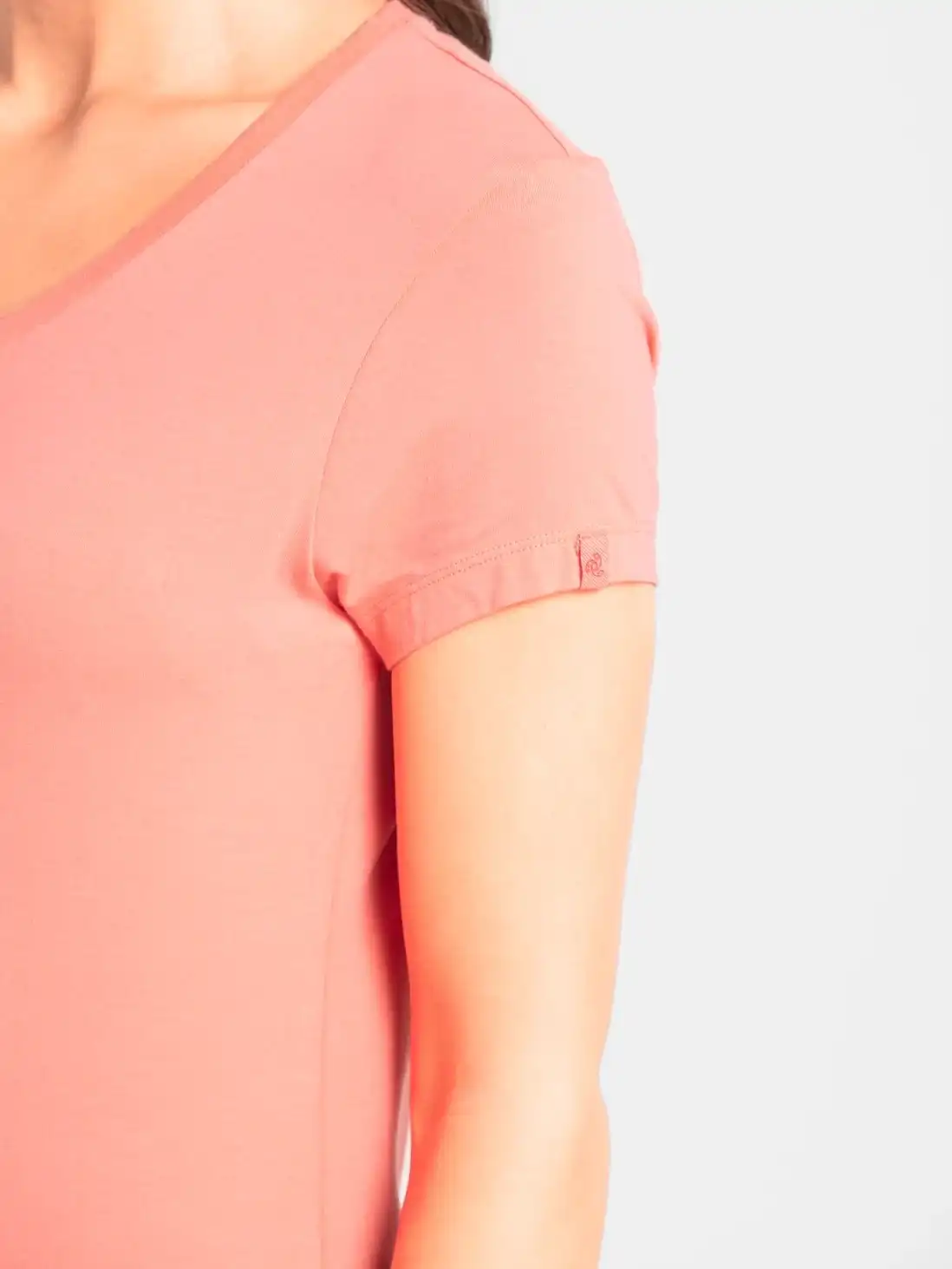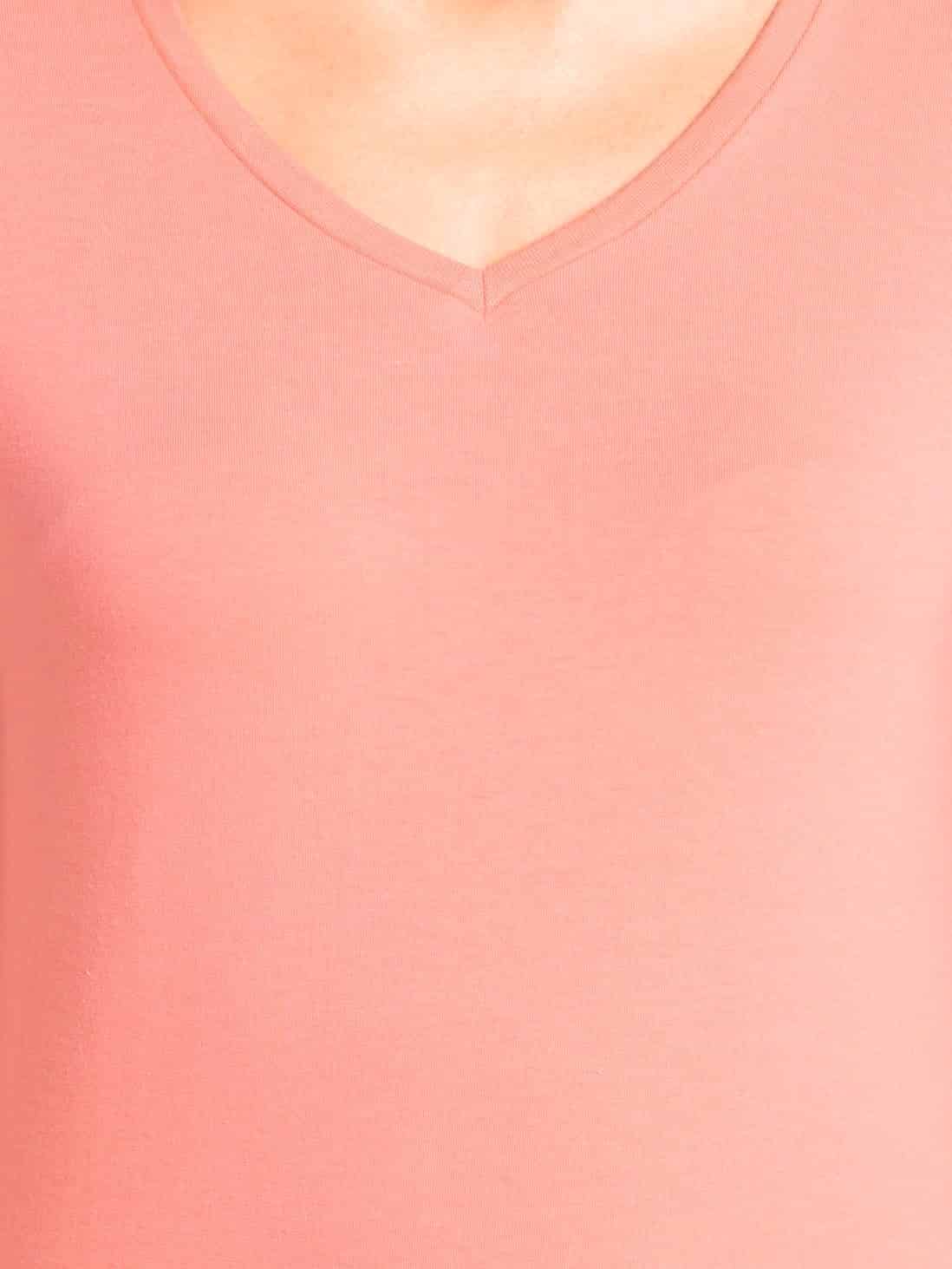 Jockey Solid V Neck Half Sleeve T-Shirt for Women - Blush Pink, Style #1359