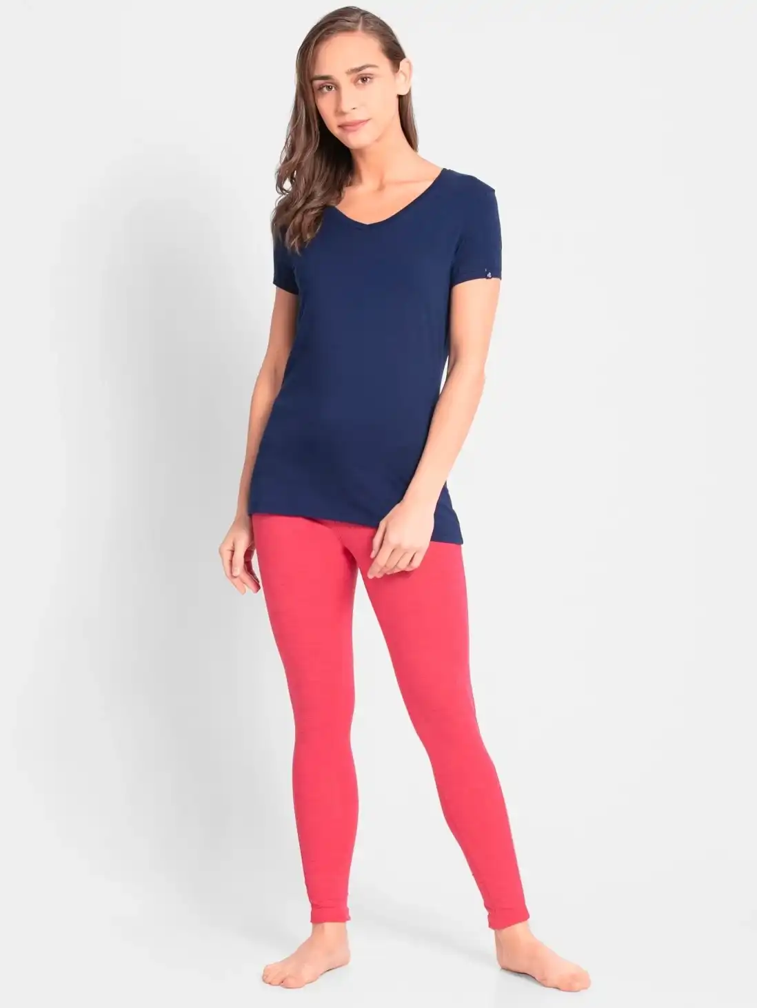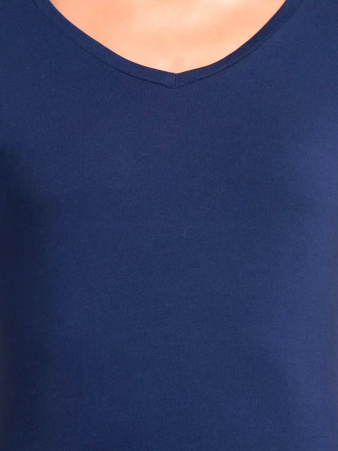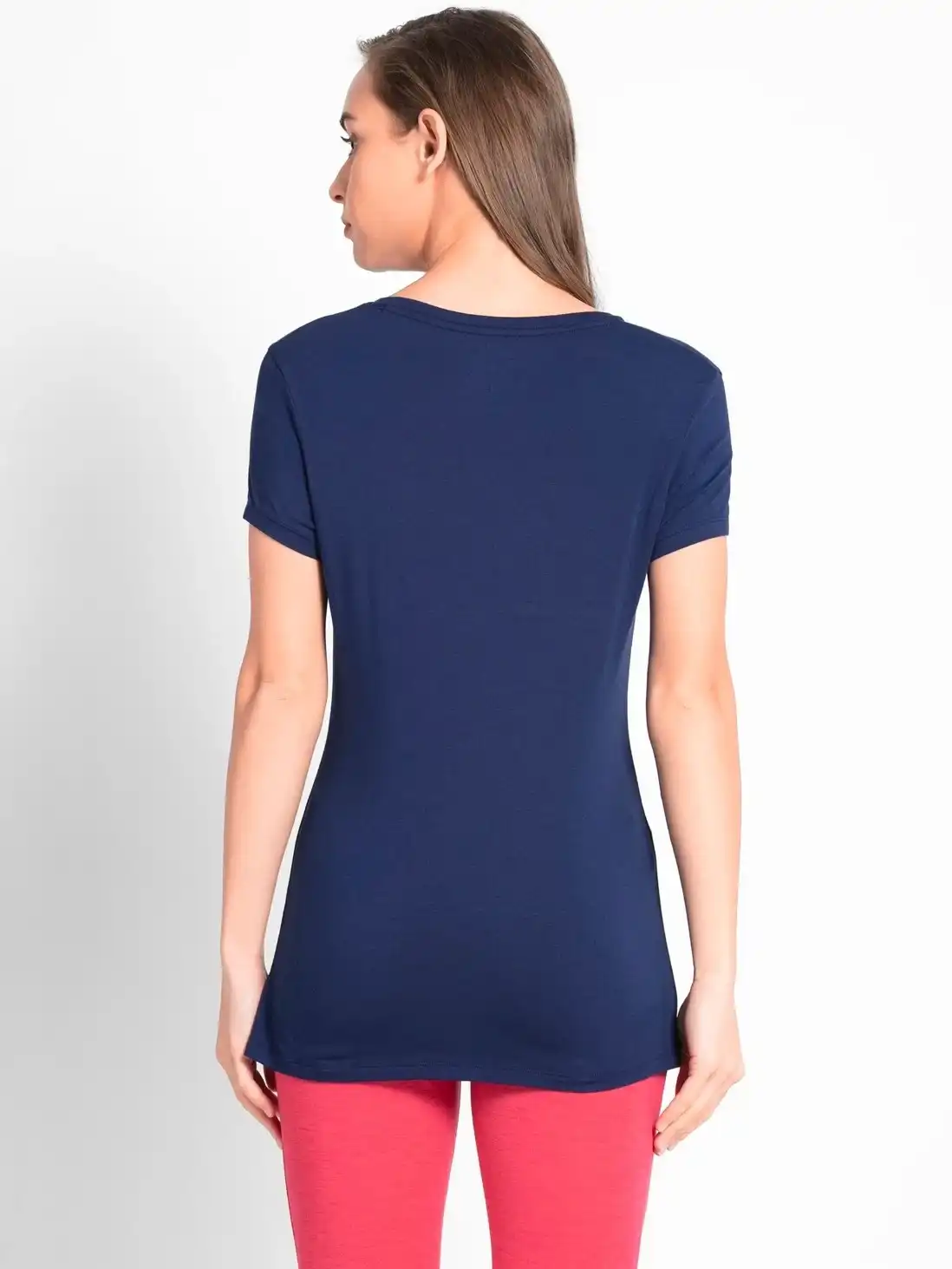 Jockey Solid V Neck Half Sleeve T-Shirt for Women - Imperial Blue, Style #1359
