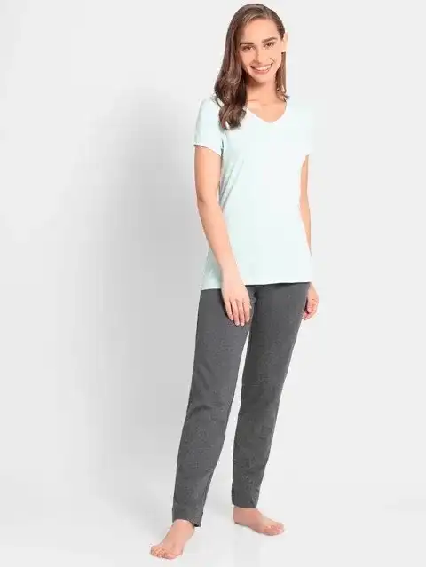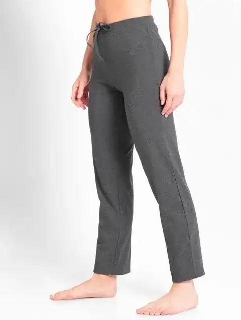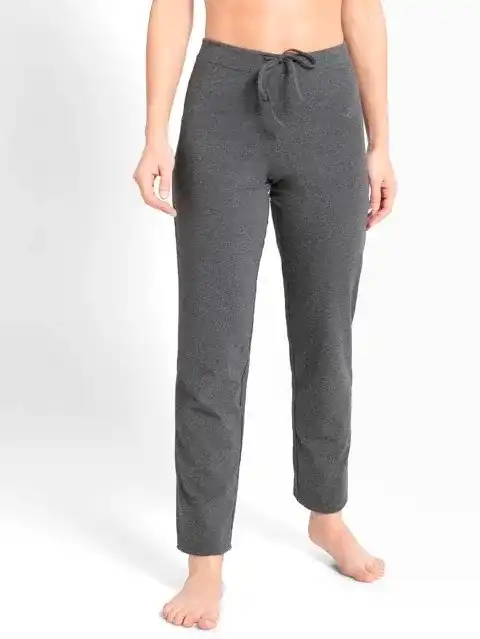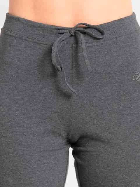 Jockey Women's Super Combed Cotton Elastane Stretch Slim Fit Trackpants With Side Pockets Charcoal Melange #1301