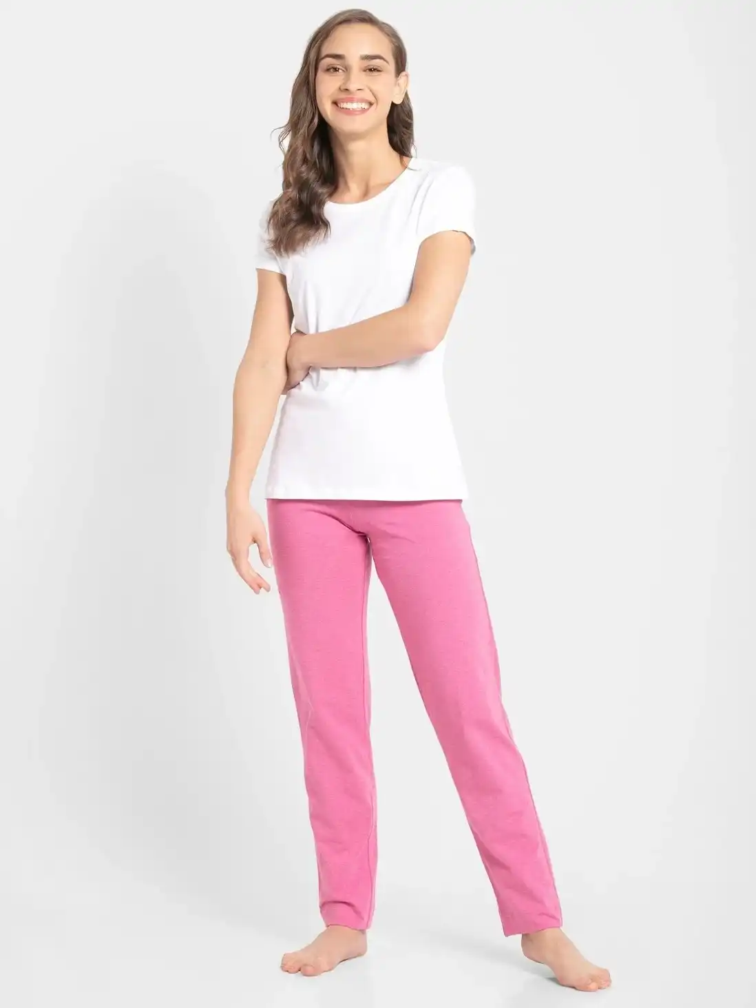 Jockey Track Pant for Women with Side Pocket & Drawstring Closure - Ibis Rose Melange, Style #1301