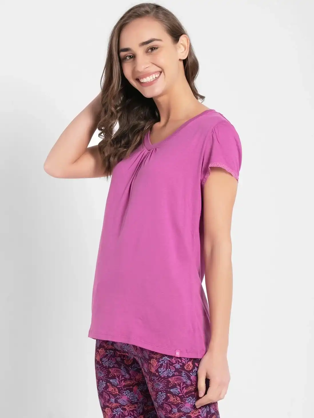 Jockey Ultra-soft V Neck Half Sleeve T-Shirt for Women - Lavendor Scent, Style #RX12