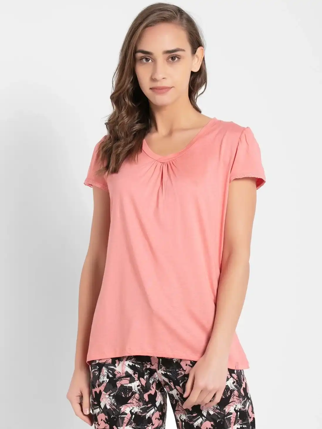 Jockey Ultra-soft V Neck Half Sleeve T-Shirt for Women - Peach Blossom, Style #RX12