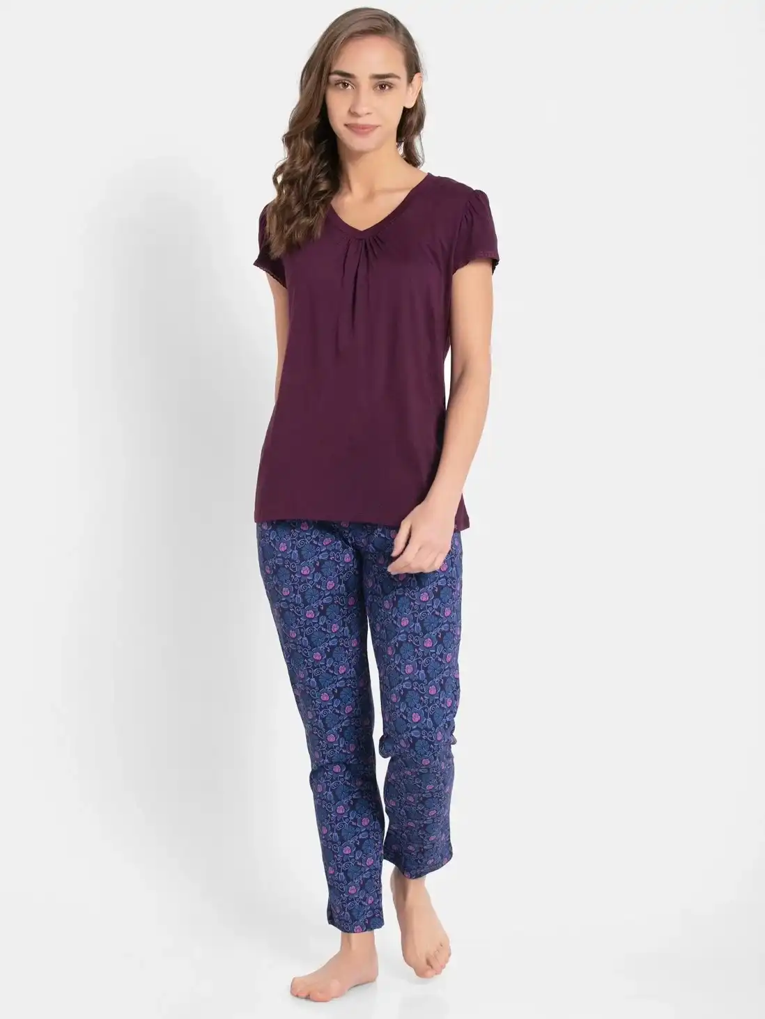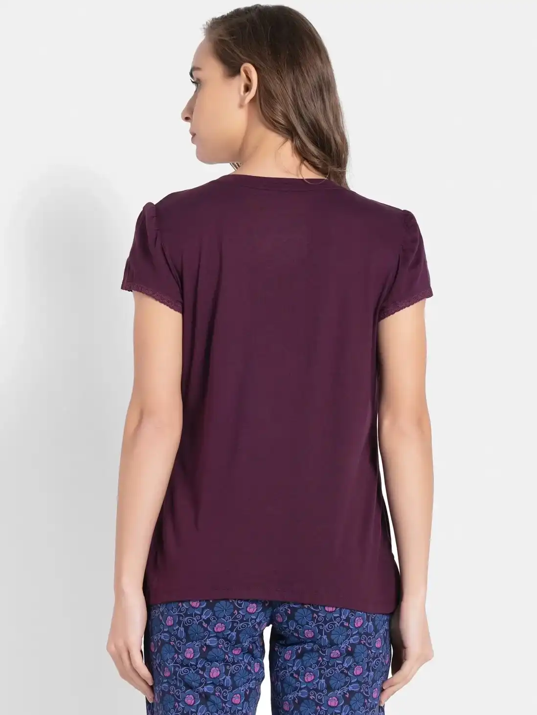 Jockey Ultra-soft V Neck Half Sleeve T-Shirt for Women - Purple Wine, Style #RX12