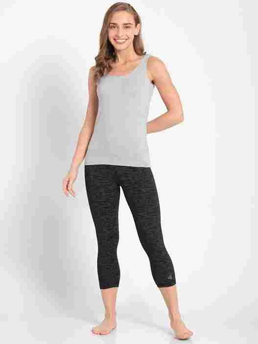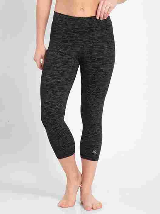Jockey Women's Super Combed Cotton Elastane Stretch Slim Fit Capri with Ultrasoft Waistband Black Marl #1391
