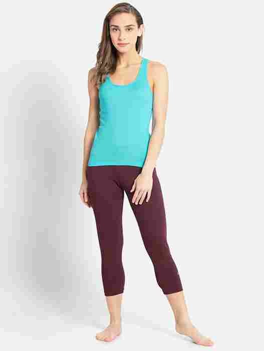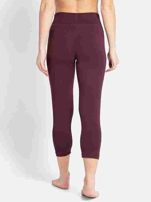 Jockey Women's Super Combed Cotton Elastane Stretch Slim Fit Capri with Ultrasoft Waistband Wine Tasting & Biscay bay #1391